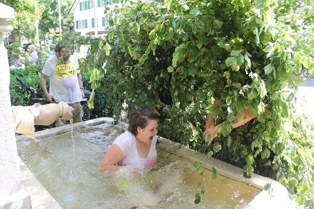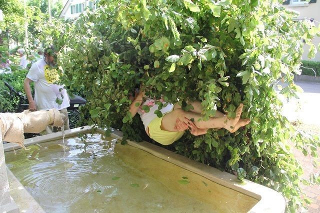 Unless you happen to live in the Swiss village of Ettingen, where people did exactly that. It’s all part of a fertility custom so quirky that even most Swiss people haven’t heard of it: Men cover their bodies in beech brushwood, simulating fauns and forest spirits, before chasing random women on the street, picking them up, and subsequently dipping them into fountain wells.