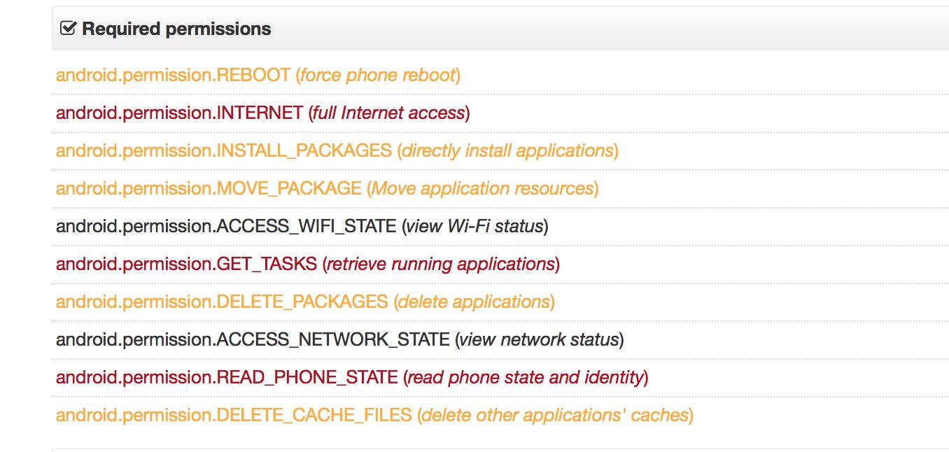 Gouveia said that in just 24 hours, he saw 620 million “check ins,” or connections, from around 2.1 million unique devices. S Suggests has a bunch of permissions, including rebooting the phone remotely and installing apps or packages.