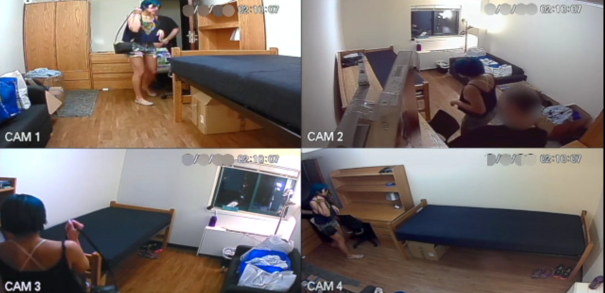 After what seemed like days—but was was really about 45 minutes—Master Avery had completely tied Sulkowicz up to a large wooden beam. Using a pulley system attached to the ceiling, he used his whole body to lift her from the ground, and after a few tries, Sulkowicz was suspended with her arms and legs wrapped around the beam, rendering her immobile. The rope visibly cut into her skin as Master Avery took off his belt and started hitting her with it.