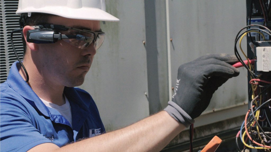 The augmented reality helmet digitally projects a worker’s instructions on a clear plastic visor that pulls down in front of their forehead. It shows things like the temperature inside of a water boiler as you stand before it, or the electricity on a construction site before it’s actually installed. It also has a navigation camera, can record video and take photos. “Onsite field workers or service contractors can take advantage of the technology to show a problem to someone in the office,” said McIntyre.