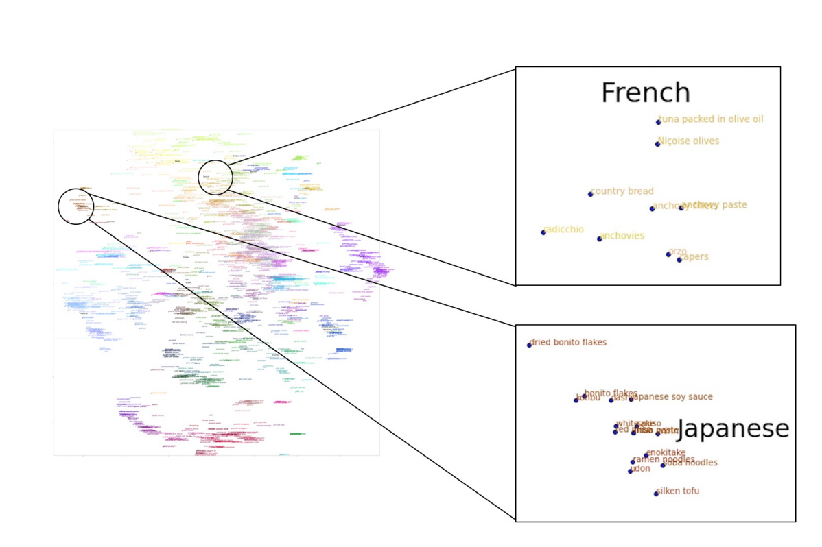 The third part of the system takes ingredients and clusters them via what’s known as a word2vec model. Commonly used in textual analysis, this is a way of quantifying associations between words, or, in this case, recipe ingredients. Similar words/ingredients are represented by similar associations of words/ingredients. The result is a rather deep way of saying how similar ingredients are to one another, and, as such, what ingredients can be substituted for other ingredients. This is how the system comes up with its alternative recipe variations.