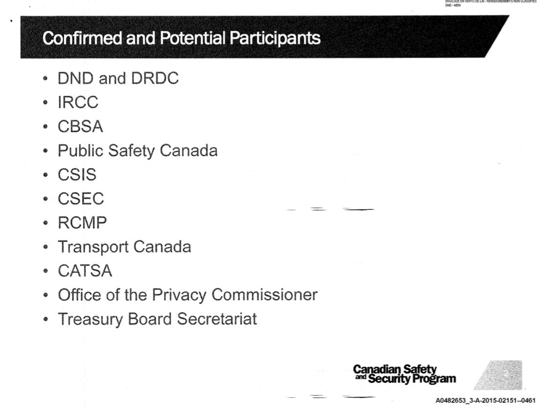 The working group should offer “cooperation on database access” between DND, Immigration, Refugees and Citizenship Canada, and the CBSA, an undated summary from a DRDC meeting to establish what the initiative can offer participants states. The group could also allow the DND to analyze biometric data it collected in Afghanistan, which it was not previously permitted to do, the summary continues.
