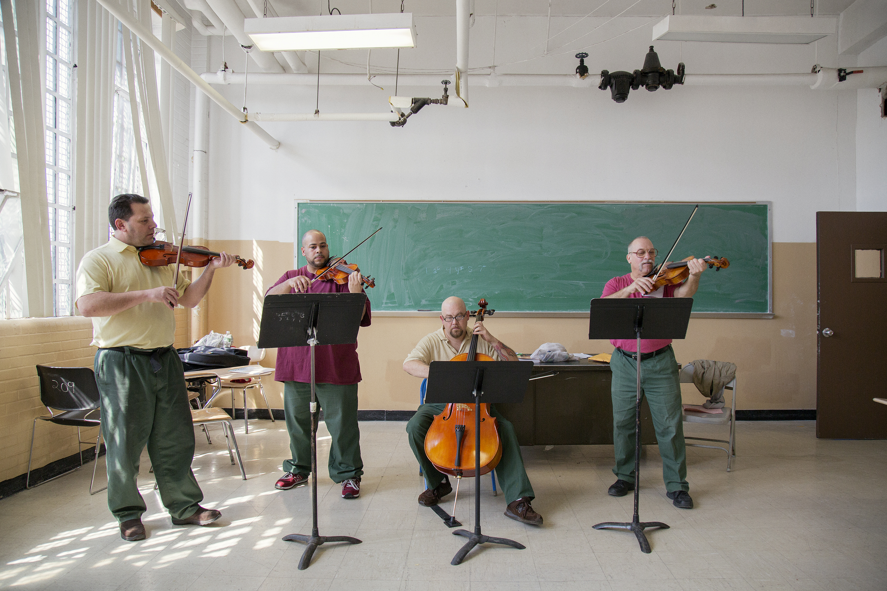 Musicambia came in to Sing Sing every Saturday, and I would spend the six days in between by practicing the lessons they had for us. I began to write little ditties, but mostly I just broke down chords into violin, viola and cello parts. I helped pull together a string ensemble: myself, a lead violinist, a violist, and a cellist. We called ourselves the Riverside Quartet, since Sing Sing is next to the Hudson River.