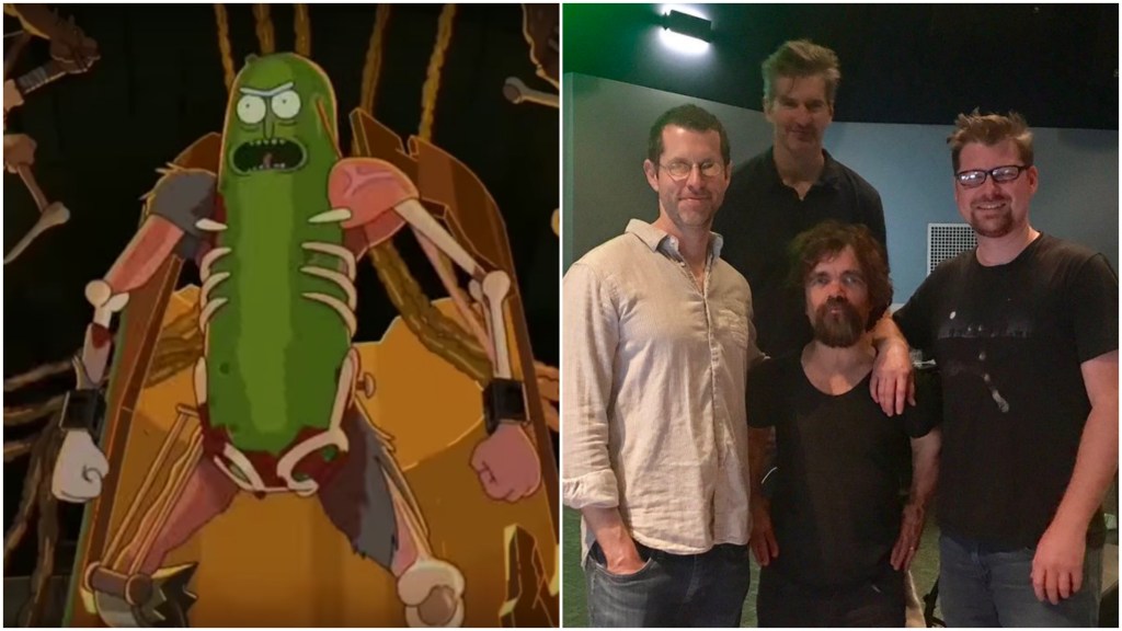 Last May, Benioff, Weiss, and Game of Thrones star Peter Dinklage joined Justin Roiland in a recording booth to lend their commentary to one of the most memed-to-death episodes of Rick and Morty ever, “Pickle Rick.” And in a clips Entertainment Weekly obtained of the longer recording, Weiss throws out an ambitious cross-over idea.