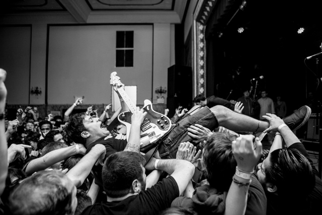 The final shows sold out in just hours, with attendees travelling from all over to catch one last glimpse of the spectacle that is Bomb the Music Industry!’s live show. And Bomb didn’t disappoint. On Friday and Sunday nights, the band played almost every song they ever wrote until they were drenched in sweat while still maintaining their trademark laid-back “whatever, dude” attitude. As they took the stage the first night, they spent almost 20 minutes of set up time just fucking around. They half-started Weakerthans songs, made inside jokes about god knows what, recommended Bill Cosby reggae videos on YouTube to the audience, and asked to borrow a floor tom. Their last shows ever and they weren’t even prepared enough to have a fucking floor tom. Finally, after a good 15 minutes of dicking around, Rosenstock looked out at the thousand-plus people chomping at the bit to go apeshit and said, “Alright, let’s just do this. Hi, we’re Bomb the Music Industry!.” He played the opening chords and immediately dove headfirst into the crowd.