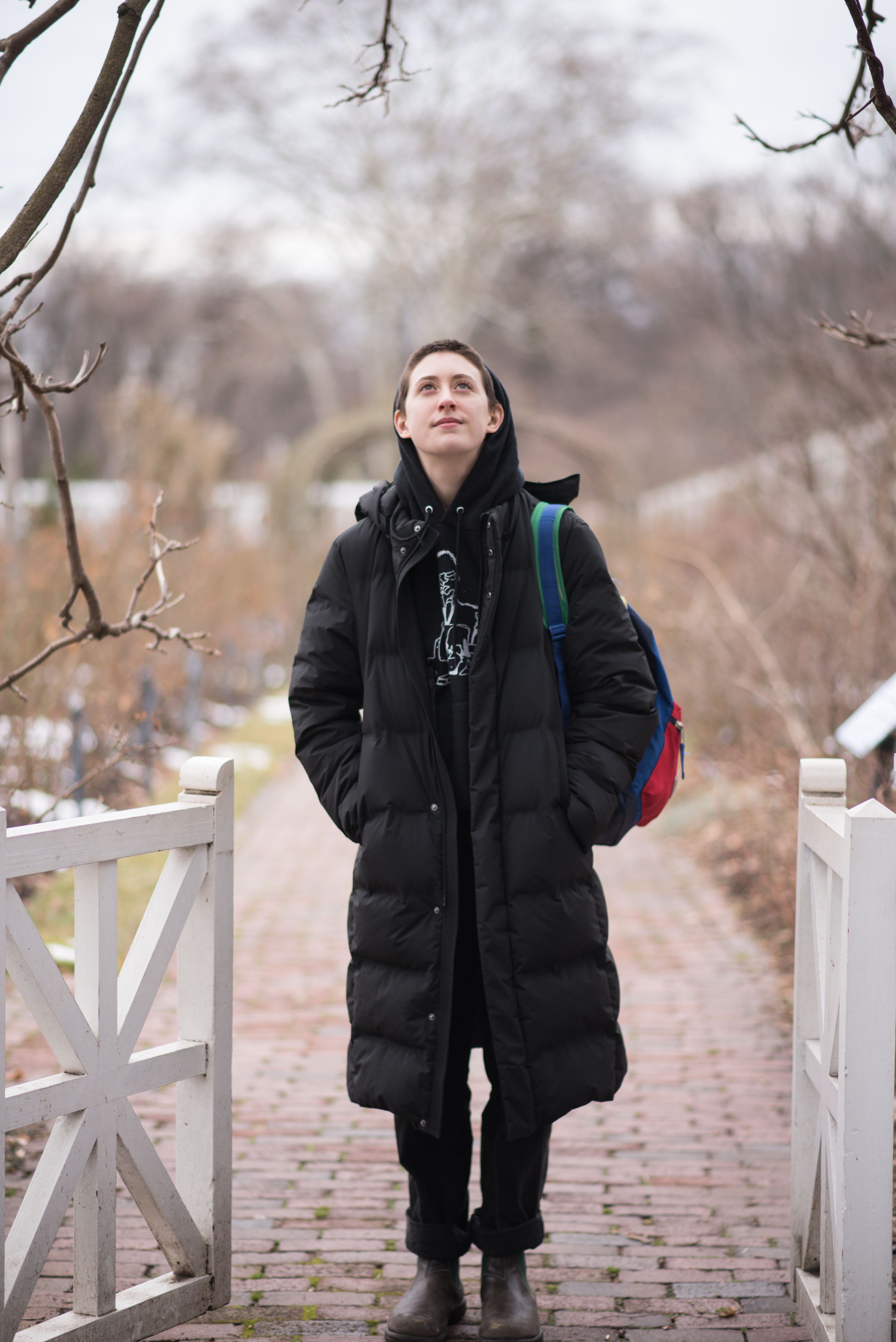 A sudden rise like this is a strange thing for a young person to deal with. But now part of the job of heading up the business that is Frankie Cosmos means doing the uncomfortable stuff, like what she’s doing today—waking up early on Presidents’ Day to dodge tourists and stand in the cold as someone takes her picture, and then sitting outside as a journalist pushes her to outline the things that stress her out about the life she’s chosen.