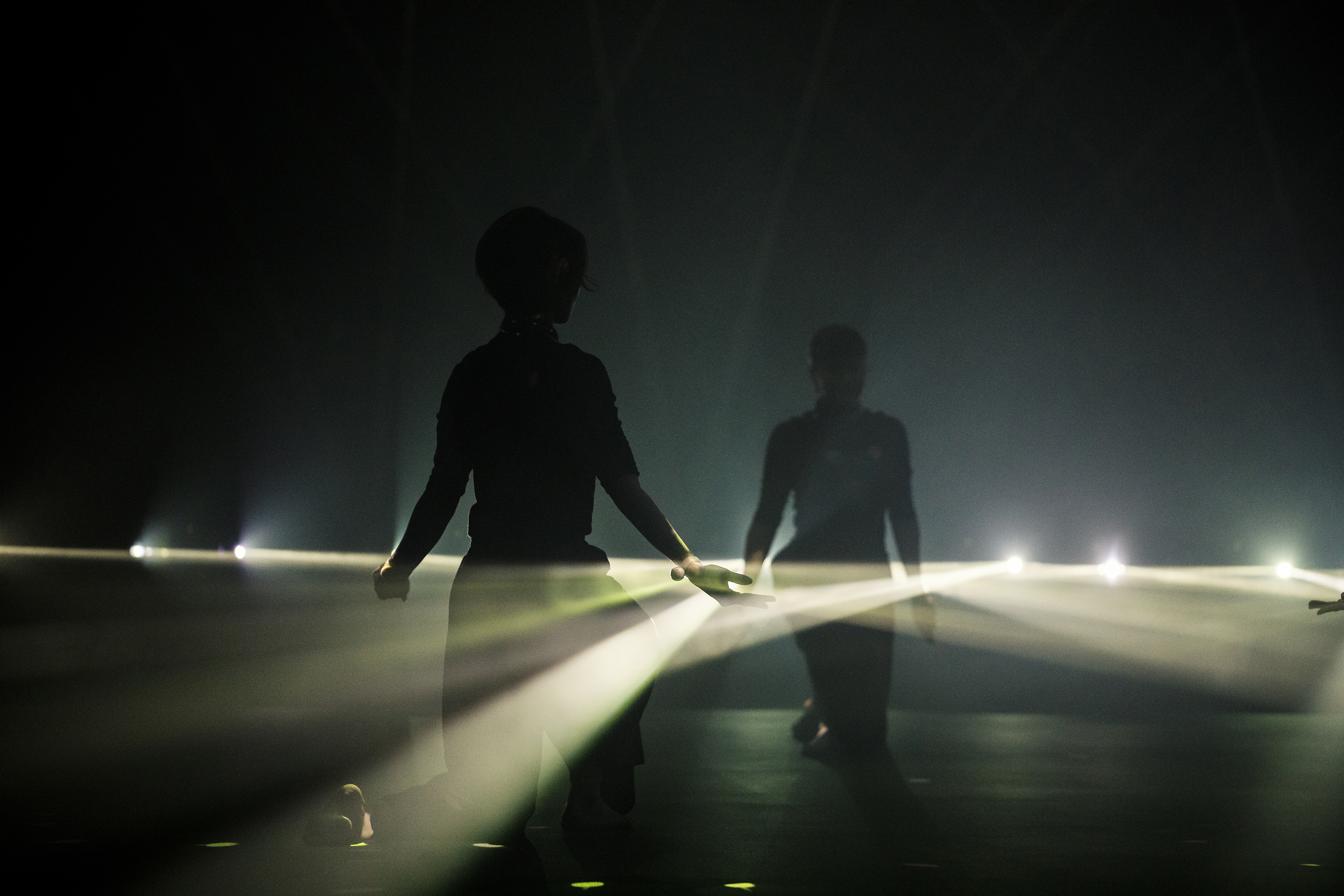 For phosphere, Manabe and Rhizomatiks Research collaborated with choreographer Mikiko and the dance troupe Elevenplay to create what he calls a “new breed of dance performance.” Wanting to go beyond augmented reality, the idea was to feature human dancers interacting with virtual dancers in an actual 3D space.