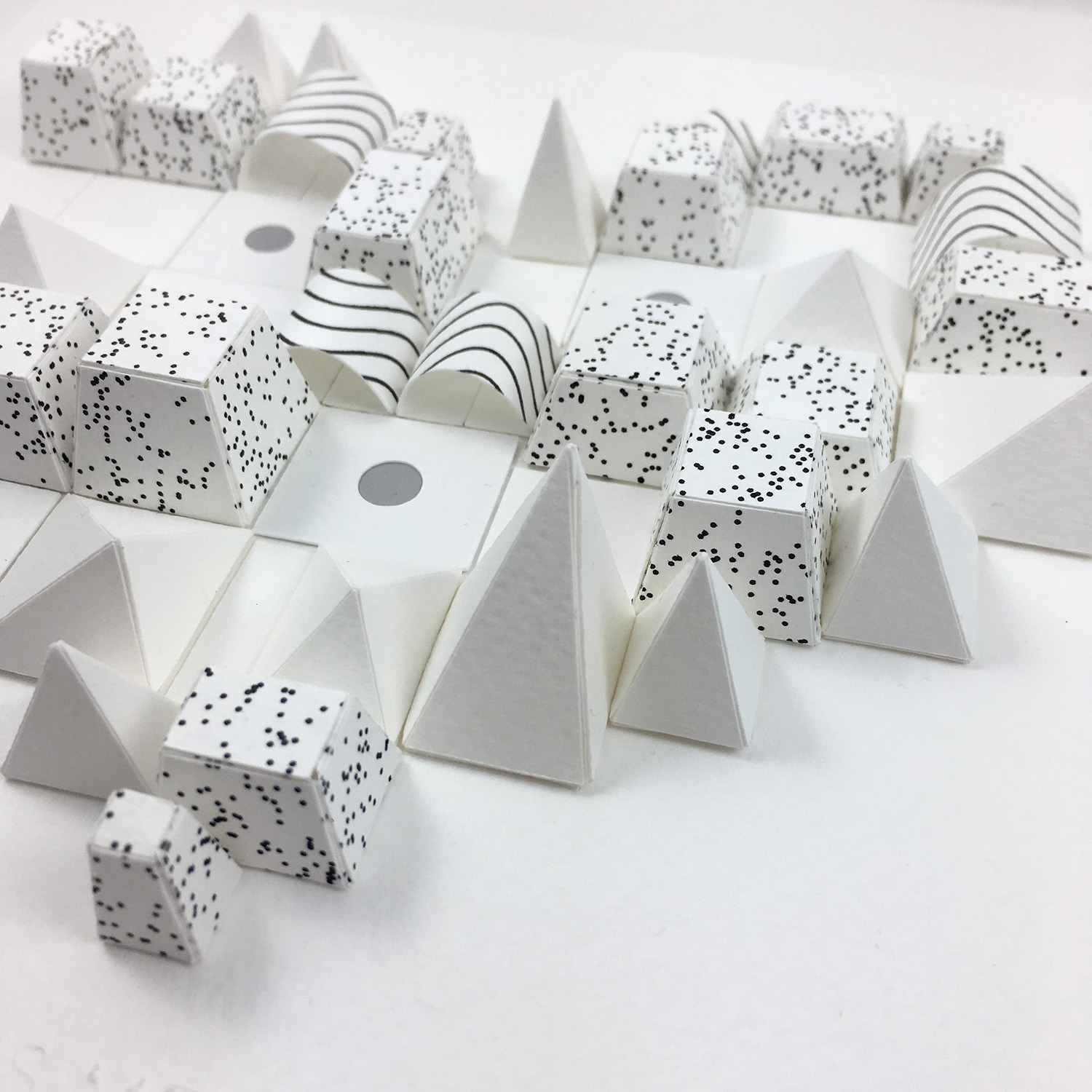 This is Schultz’s third year making algorithmic Valentine’s Day cards. Funding the project for the first time with Kickstarter’s “make 100” effort, where the goal is to make 100 editions of a project, Schultz exceeded his original goal, ending up with over 500 orders. Inspired by artists Irving Harper and Matthew Shlian’s paper sculptures, Schultz brings a three-dimensional aspect to some of this year’s cards, creating paper sculptures out of designs that take him eight to ten hours to make each. Knowing he couldn’t possibly spend that amount of time on each one, he got inventive, offering digital versions of the three-dimensional sculptures using a pen plotter to give that 3D effect.