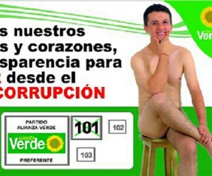 El candidato a la Cámara por la Alianza Verde Marlon Monsalve quiso demostrar en 2014 que sus propuestas eran transparentes y que no tenía un gran presupuesto en su campaña. Esta iniciativa lo llevó a posar desnudo para su publicidad.
