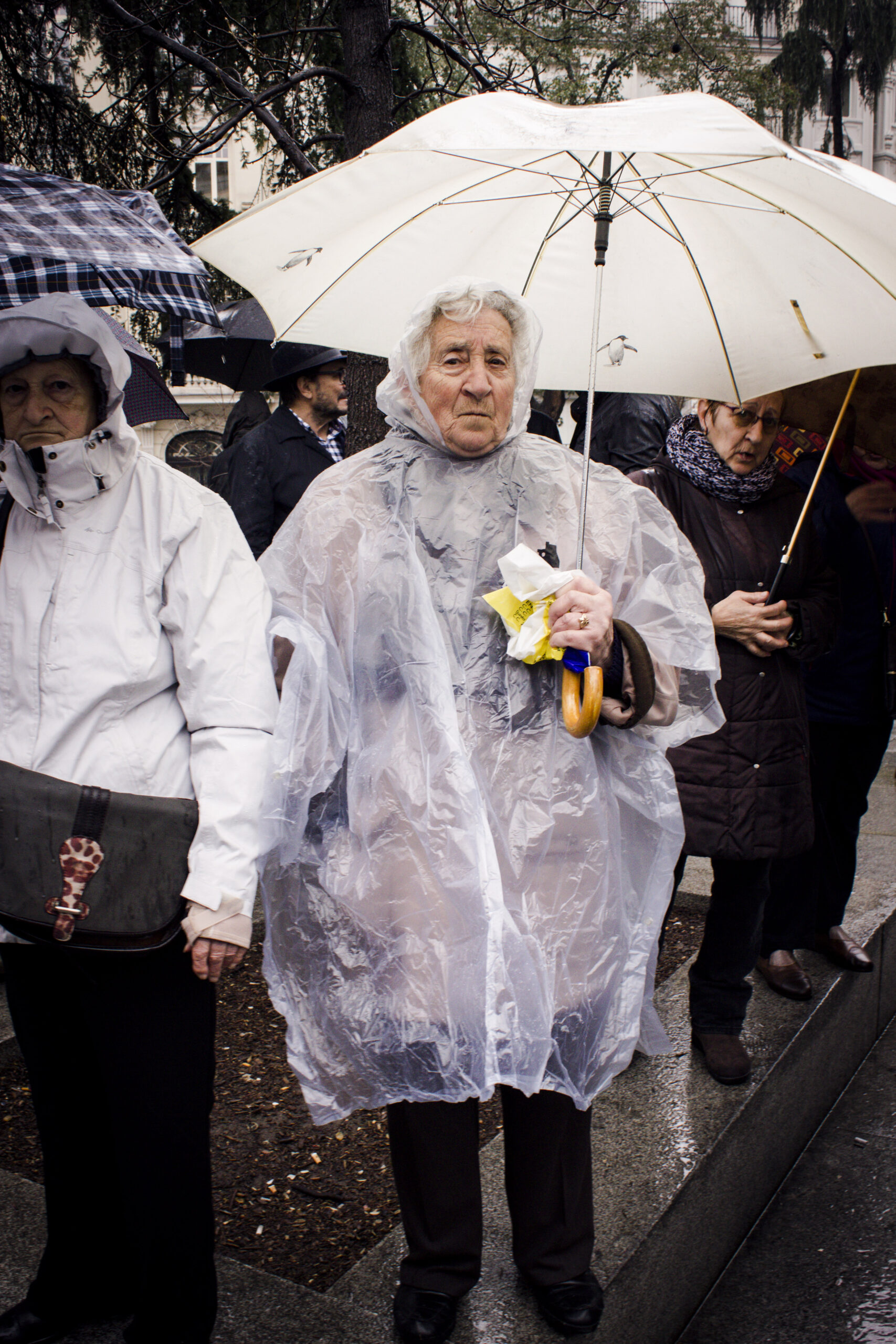 El señor reanuda su consigna y grita «ladrones, ladrones», y me despido de la manifestación más extraña y más bonita a la que nunca he ido con una sensación muy rara. Orgullosa por todos esos jubilados, pero con mucha rabia por un sistema que les hace tener que protestar bajo la lluvia, incapaz de cuidarlos como se merecen, de cuidarlos como ellos nos han cuidado a nosotros siempre.