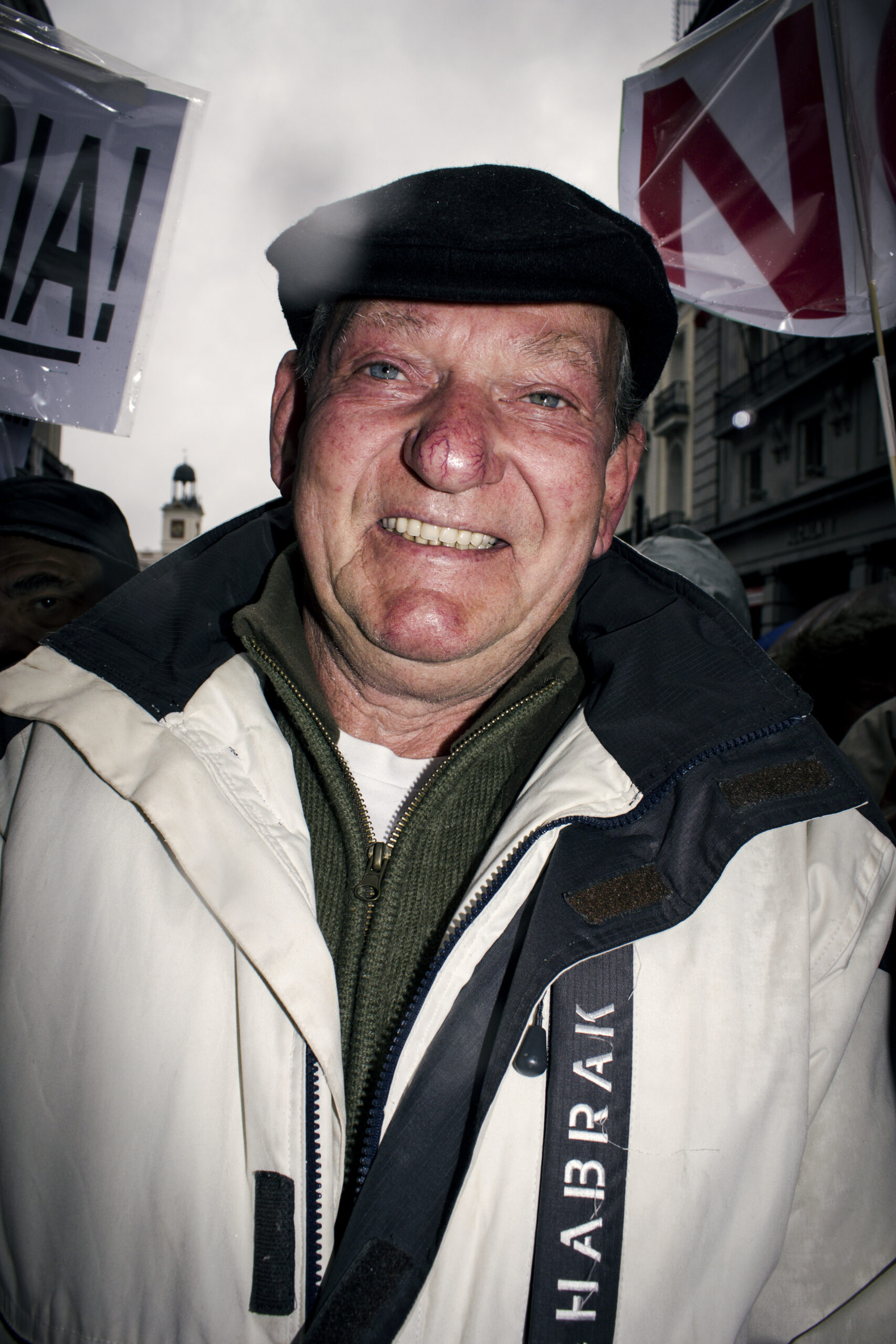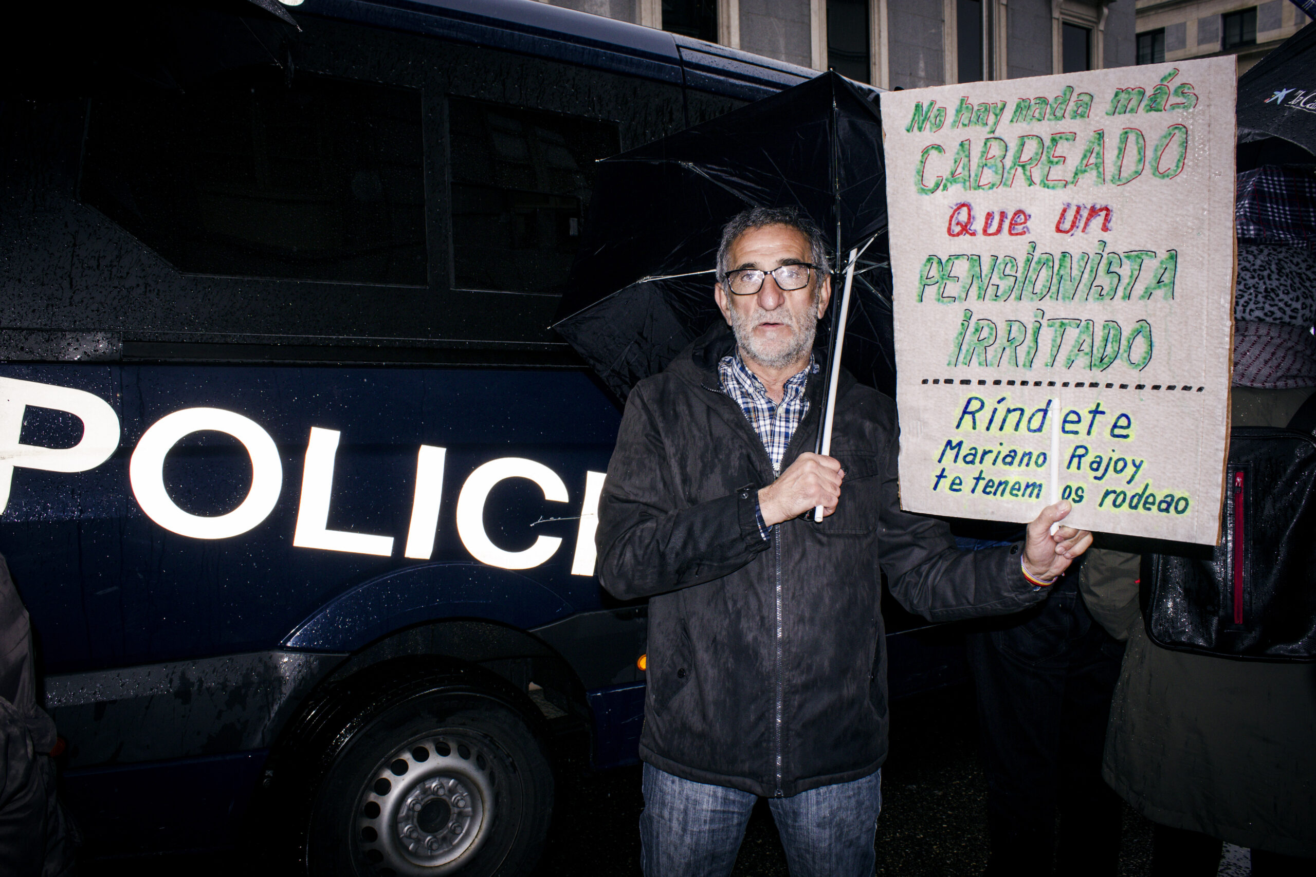 «Aquí hacen falta jóvenes apoyando, porque al final no es algo solo de los viejos. A vosotros también os tocará dejar de trabajar y a ver qué hacéis si siguen vaciando la hucha de las pensiones», me dice refugiado bajo un paraguas rojo.