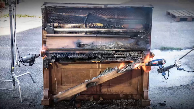 Dos pistolas de calor son sostenidas en cada lado de un piano desgastado en el inicio del más reciente corto de Laurin Döpfner, Deconstucted Piano. La deconstrucción, en este caso, no es un análisis de una forma musical o una pieza que resalte las metáforas y clichés de su medio. Es la vaporización literal de este gran instrumento musical, pulgada a pulgada hasta que no quede estructura, una deconstrucción literal.Capturada en formato de timelapse, Deconstucted Piano capta un cuadro de madera en llamas cada seis segundos, lo que crea la impresión de un piano casi derritiéndose en cenizas frente a tus ojos. El factor trascendente en este ardiente corto de Döpfner es que una de las piezas clásicas del piano "Claro de Luna" de Beethoven suena de fondo, agregando una cautivadora belleza a la masacre que está en pantalla.Aquí tienes algunas imágenes de la deconstrucción ardiente del piano, no te acerques mucho o podrías ser alcanzado por una brasa.