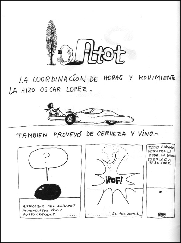 Yo tengo cinco nietos, cuatro varones y una nena. Cuando miro a la bebé me fragilizo. ¿Qué querés? Para mí ese mundo es muy feliz, no tengo por qué romperlo ni con mi ego ni con mis mierdas. Es el mundo concebido para la imaginación o para enseñarles a dibujar en la compu a ellos cuando crezcan. La otra vez vino Fito con sus dos hijos y yo me enternezco con ellos de una manera… Y Martín me empezó a pedir que le mostrara mis dibujos de autos, un preview de autos todos pintados, re–grossos. Y se volvió loco. Hasta que se fue le estuve dibujando autos. Y después me pidió un avión, ¿entendés?… De tal palo tal astilla ¿no?… Mis nietos me miran y me dicen: “Abuelo, quiero hojas”. Ni me saludan, vienen a dibujar acá. Eso es maravilloso.