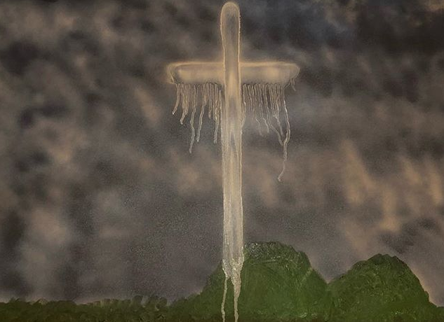 Es digno mencionar que la obra hecha a través de aerosol la llevó a cabo con el fin de hacer una colecta de dinero que pueda apoyar a las víctimas de los incendios forestales en California. Un gesto verdaderamente laudeable, pero pensemos por un segundo esto: la pieza que denota una cruz macabra, sobre fondo gris, y lo que sugieren ser montañas verdes, no parece realmente algo digno de canjearse por tanto dinero.