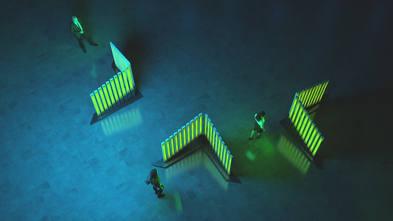 POP! es una instalación lumínica ambiental formada por esferas luminosas suspendidas sobre una superficie, que juntas crean un techo de burbujas que envuelven y transforman el espacio en un ambiente vivo, radiante, que propicia la contemplación.