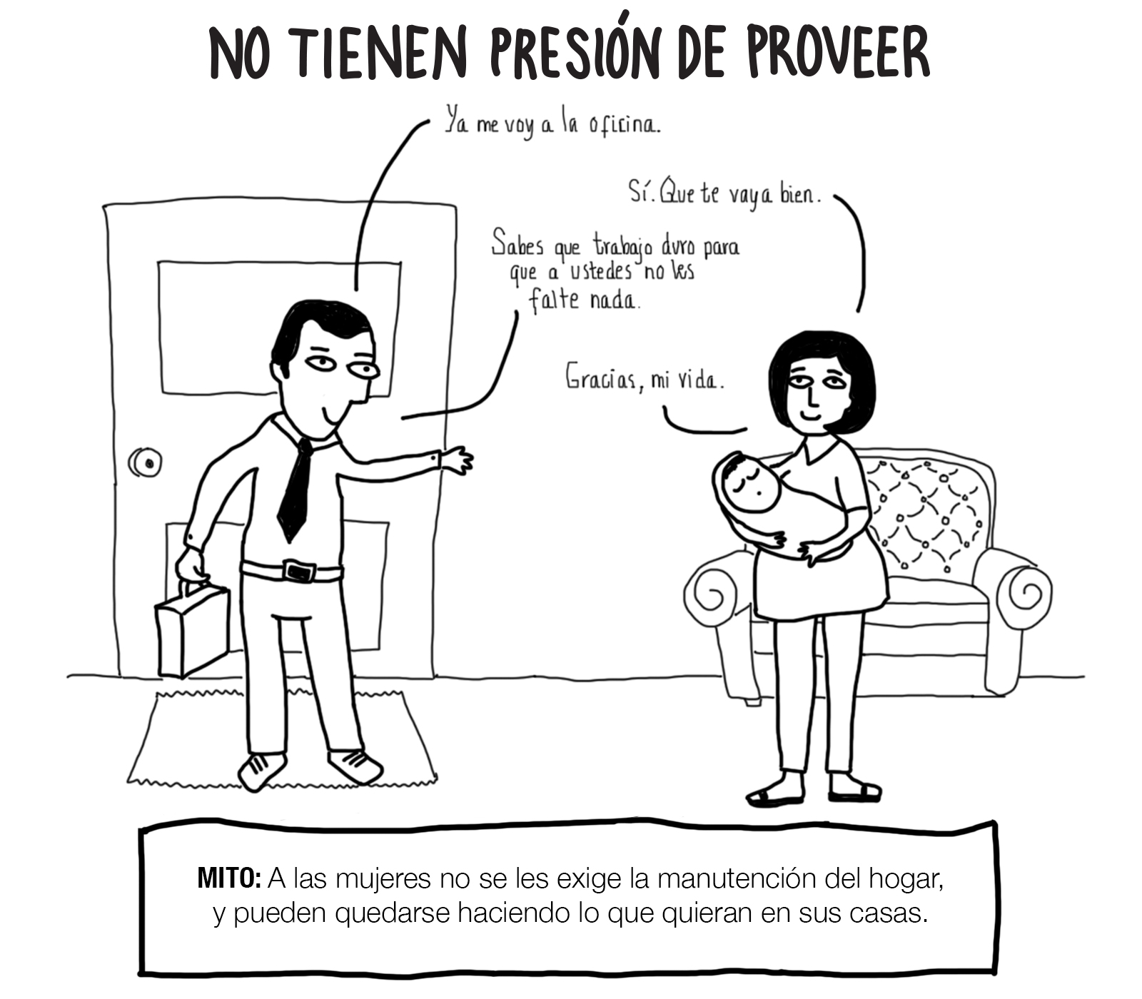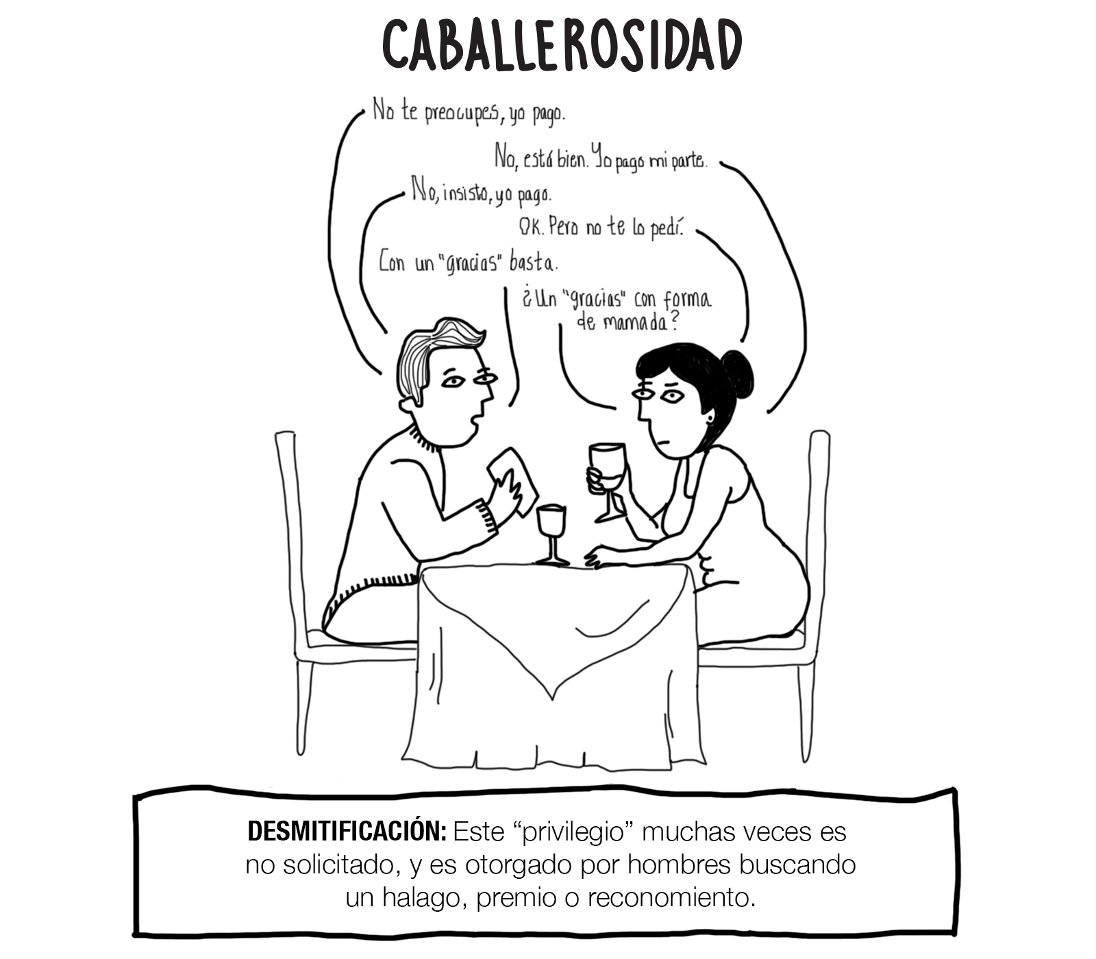 Cuando la gente habla de «el privilegio femenino», más bien se refieren a una circunstancia en donde los hombres no son los beneficiados. Por ejemplo: el hecho de que la sociedad espere que los hombres provean a la familia y no lloren en público no es indicador de que las mujeres tengamos un privilegio, puesto que no nos estamos beneficiando inherentemente de la desventaja de los hombres. Entonces, los «privilegios» de las mujeres se expresan en un sector más pequeño, privado y doméstico, y no representan ventajas que tengamos naturalmente dentro del sistema.