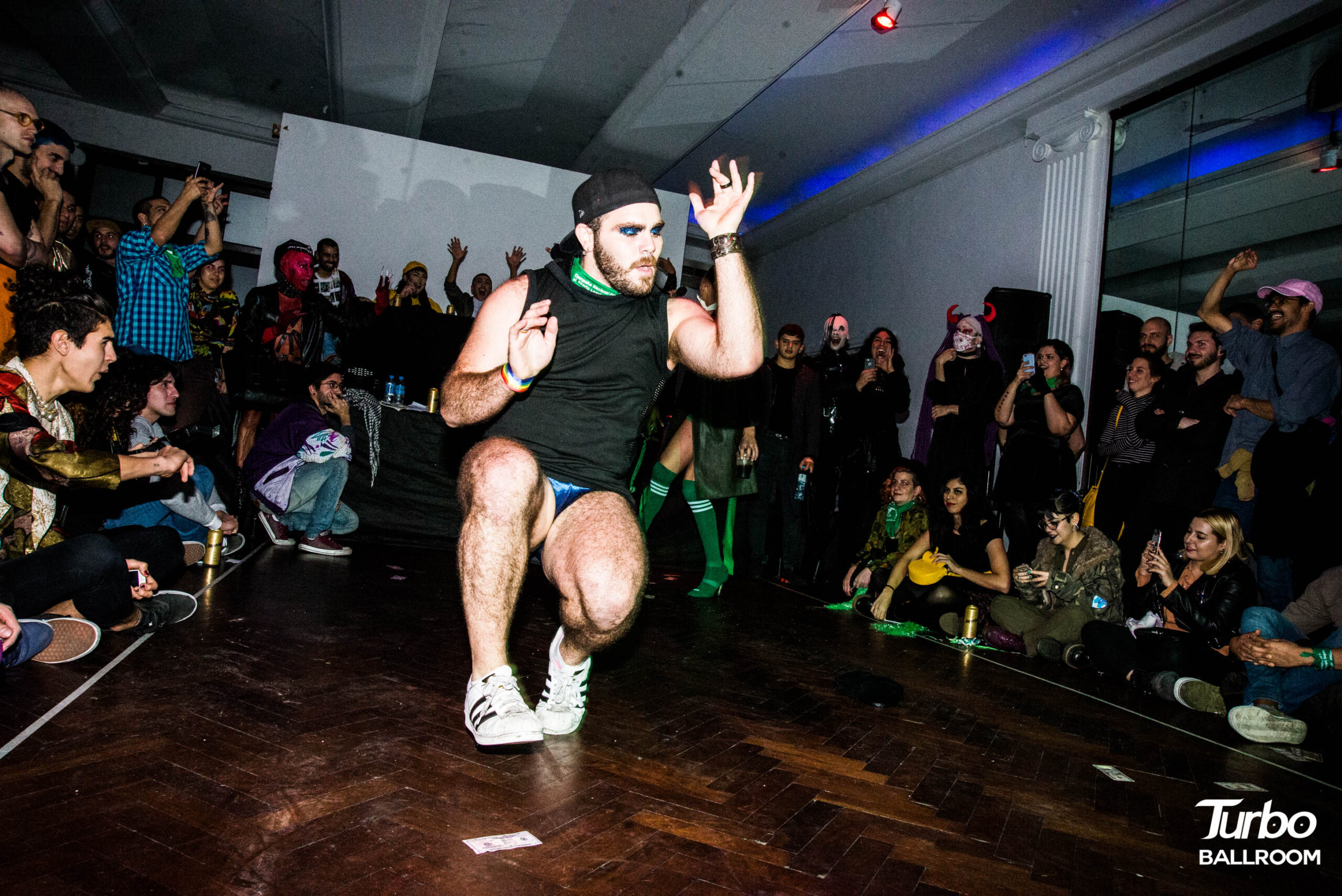 En voguing también participa Chaco, ahora enfundado en un conjuntito de Adidas. “Recién empecé a bailar en agosto. Una amiga me mostró videos de voguing y me enamoré. Dije: quiero ser parte. Después empecé a tomar clases y nutrirme de esto que me hace súper feliz. Me genera un montón de cosas súper lindas, pero al principio también me costó aprender a disfrutar de bailar”. Sin embargo, Chaco se convirtió en una estrella de la Turbo al ganar voguing además de runway en el ball anterior. Hoy ganaría el vogue de nuevo.