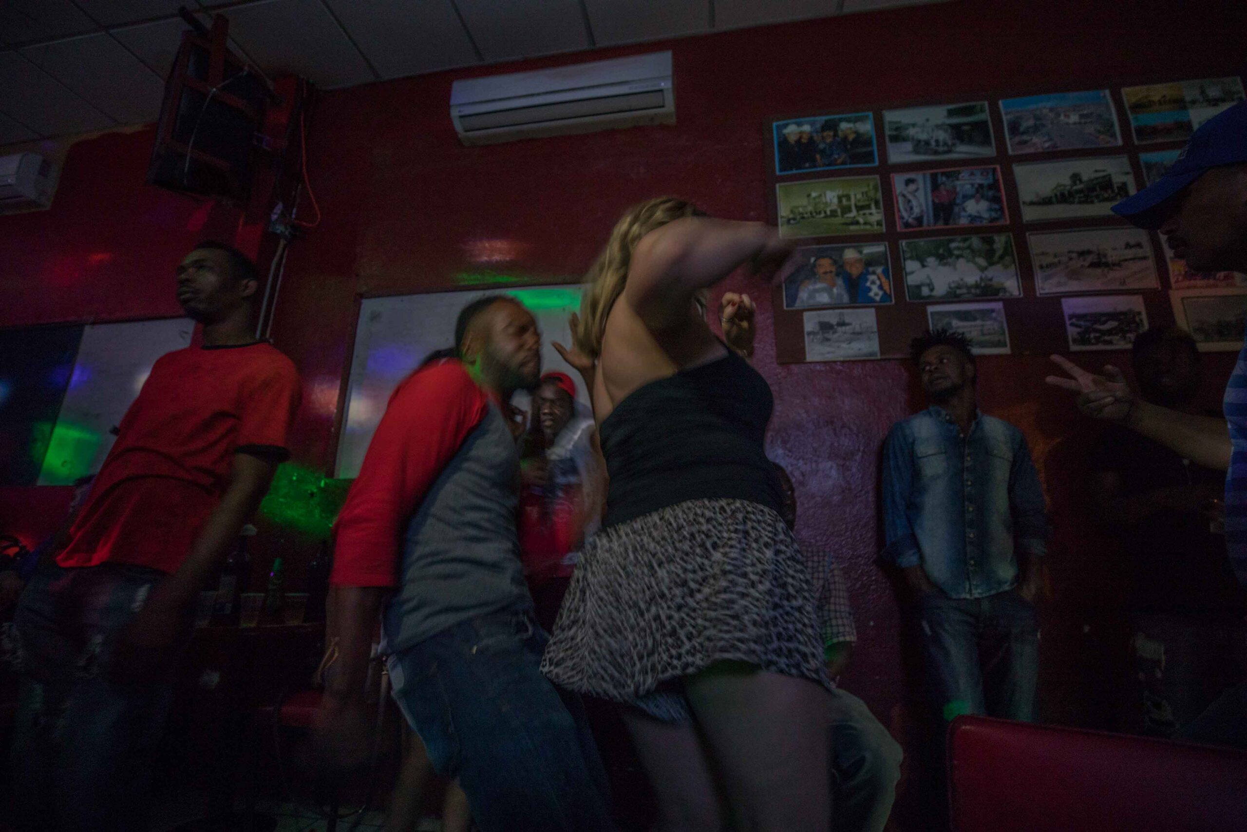 Entonces, Pouchon decide que ya estuvo de cursilerías y Tony Mix vuelve a la carga haciendo perrear sin descanso hasta al guardia de seguridad, que desde la puerta juega a disparar su taser a las travestis y transexuales que deambulan por la avenida a la espera de clientes, en la acera contraria, porque los haitianos son famosos por haber dejado clara su heterosexualidad, su poca tolerancia y sus humores volátiles, por lo que no tienen caso las confrontaciones gratuitas. Y por cierto, también han dejado claro su machismo, porque aunque es obvio que en la ciudad hay cientos de haitianas que llegaron con sus familias, es casi imposible toparse con una. Públicamente, en lo que se refiere a la vida nocturna, pareciera que sólo hay hombres haitianos.