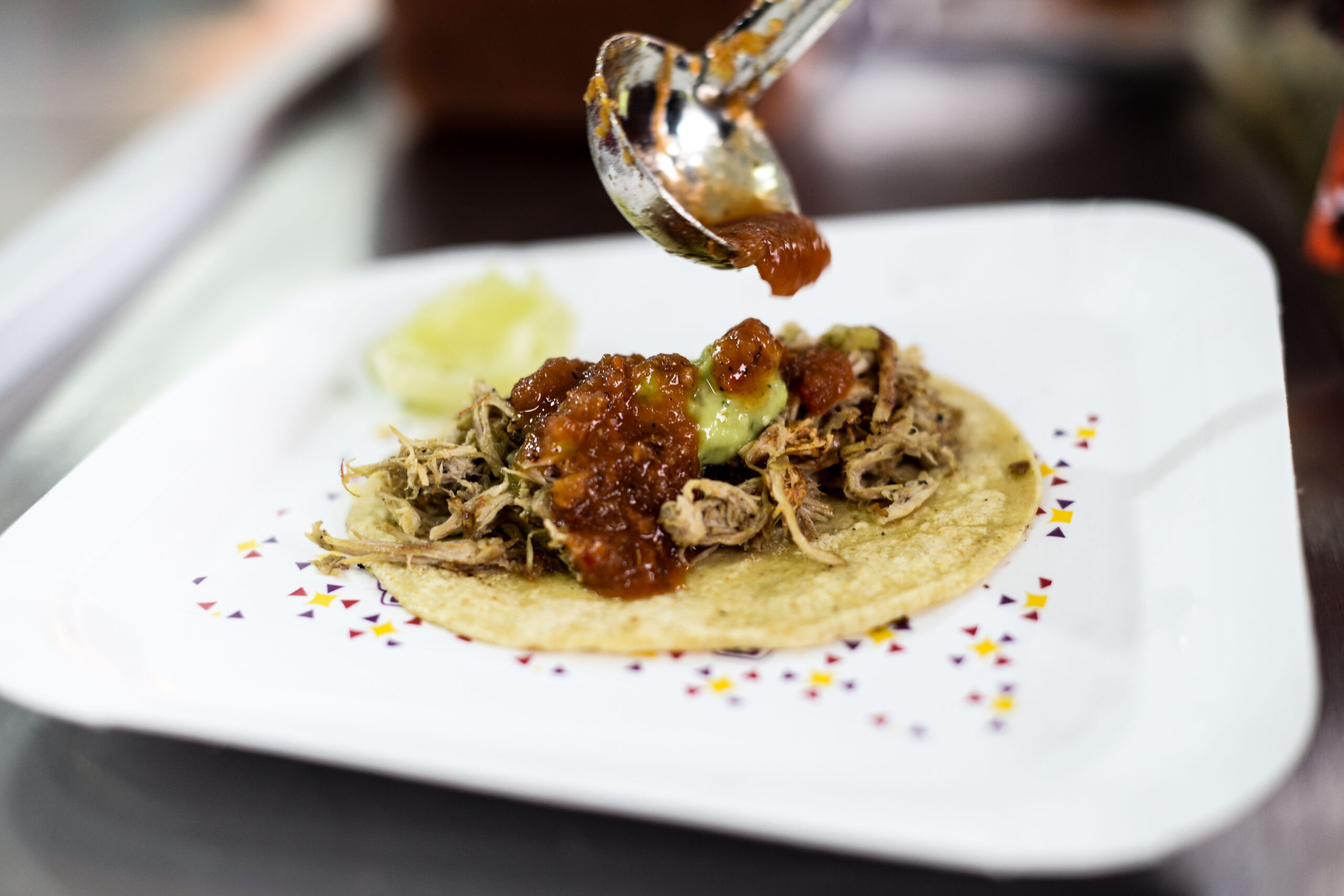 Dentro de esta “investigación”, encontramos una pequeña joya camuflada en la zona grande: Dos Chingones. Heredero en Colombia de una tradición salvadoreña y mexicana, Ricardo Rodríguez sirve tacos a 5.000 pesos. Tacos hechos y derechos, en tortilla de maíz, con la magia inevitable de la variedad: de carnitas, de cochinita pibil, de chicharrón, al pastor. La especialidad parece ser esta última: los trozos de carne se ven a lo lejos amontonados al estilo kebab en un tubo al que dan ganas de pegarle un mordisco. Se sirven con piña cocinada para que quede como mantequilla, limón y la salsa de preferencia (la nuestra es la roja). Cada taco cuesta 5.000 pesos. Con tres queda comido, mijo.