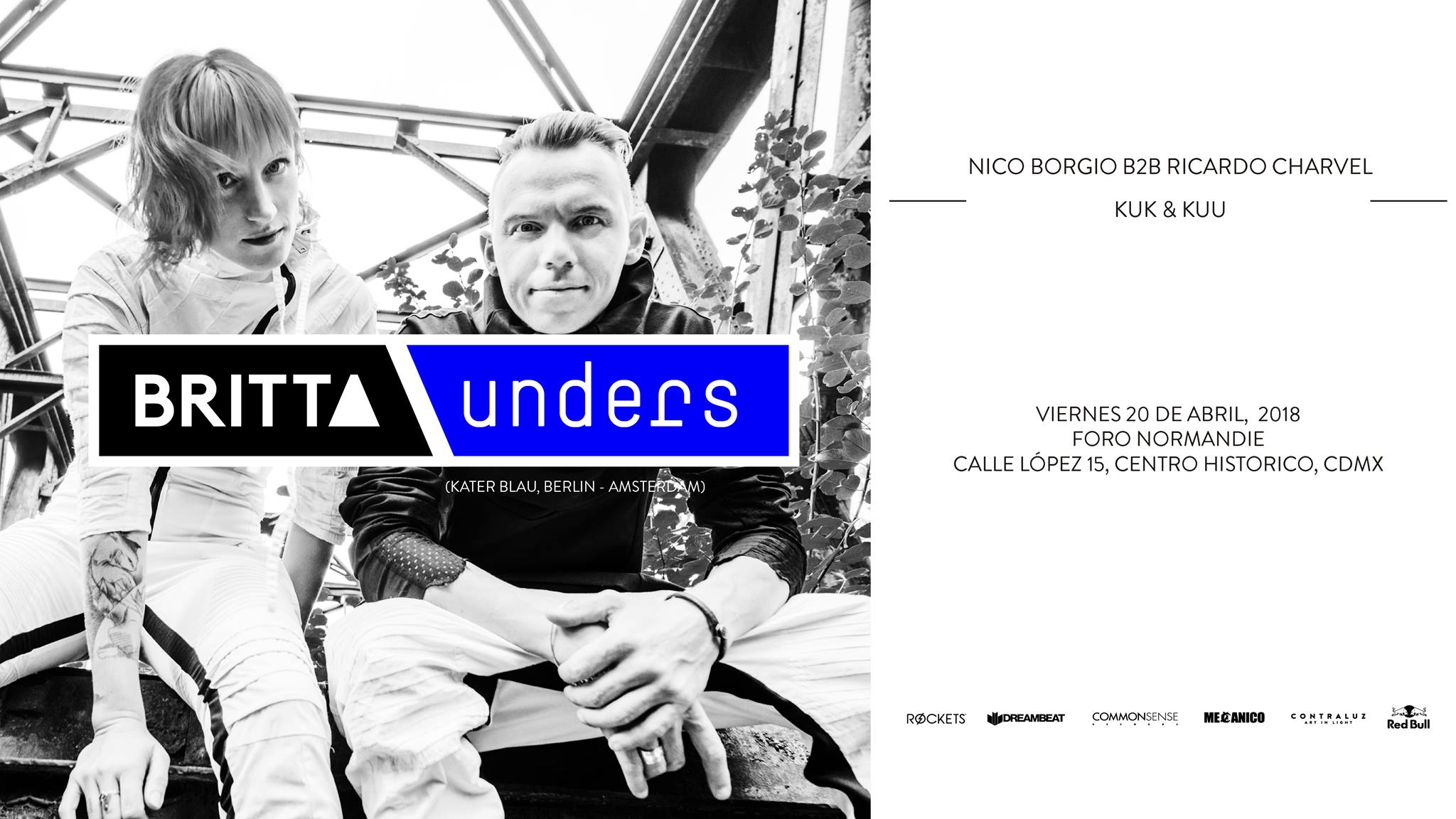 Britt y Unders han hecho una combinación que los ha llevado a esparcir esa calidad y el amor por la música electrónica a Showless parties en Old Mokum, a Woomoon en Ibiza, entre otros lugares, donde han ejecutado míticas sesiones que quedarán registradas una eternidad en la memoria de los asistentes. Esta vez, es el turno de México para disfrutar de sus mezclas galácticas.