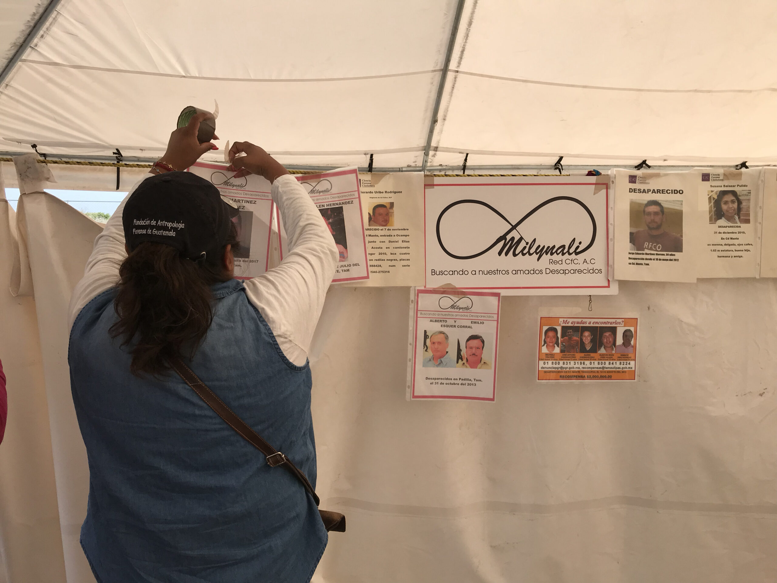 Antes de entrar a la zona cero, están las carpas para los familiares que exigieron formar parte del proceso de exhumación como observadores. Una de las mesas es del Ministerio Público, donde reciben nuevas denuncias y muestras de sangre para ampliar la base de perfiles genéticos. Entre el 16 de abril que empezaron los trabajos de exhumación y el 29 de junio que finalizaron, se obtuvieron 311 muestras referenciales de ADN de familiares para los cotejos y 69 denuncias de desaparición. Después, está la carpa del centro de salud donde te ponen la vacuna del tétano, un requisito para todos los que quieran entrar a la zona cero.