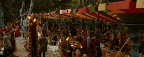 Para quienes no lograron entender su dialecto, Hodor comenta que una fiesta en la edad media generalmente se hacía a gran escala, en los jardines del palacio real, con un gran servicio de alimentos.