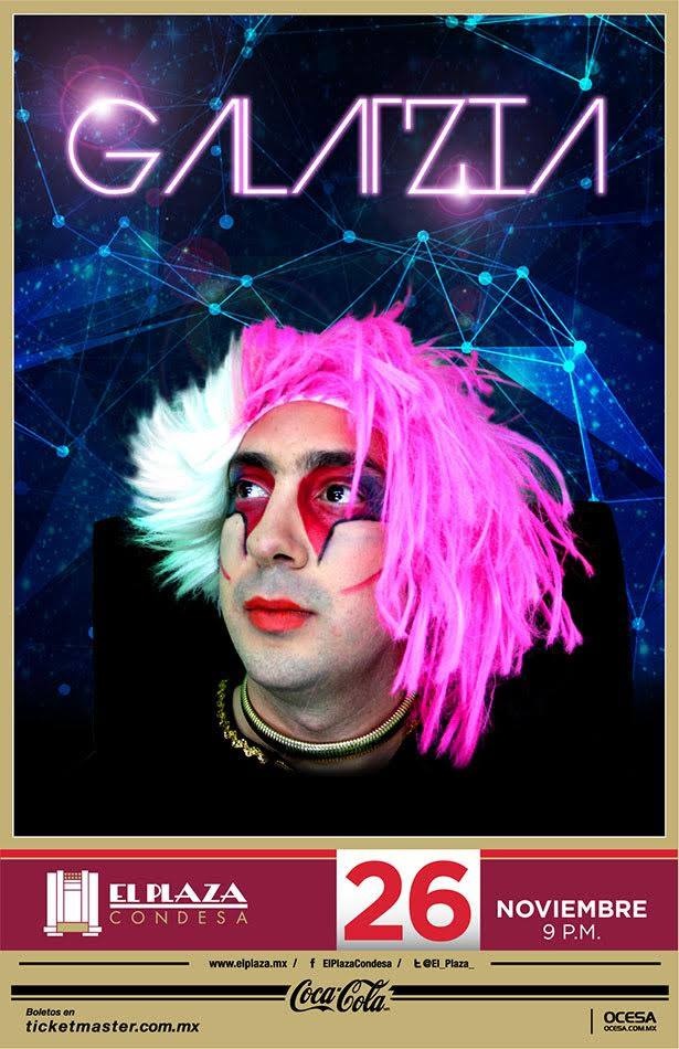 Y no, antes de que pudiera hablar con algún gerente del bar para notificar que estaba ahí para hacerle una entrevista a la reina del planeta Escrotox, Galatzia se acercó a mí. Me recibió con un traje blanco que parecía haber pertenecido a algún profeta poderoso de Marte (un manto que emanaba más fuerza que cualquier súper saiyajín), su cabello rosa peinado con bucles y una sonrisa que vino acompañada de una bienvenida con algunas malas palabras.Antes de emprezar la entrevista, Galatzia pidió a algunos de sus súbditos que nos alejaran del sol. Y también hizo que nos trajeran unos tragos. A diferencia de lo que se espera de una emperatriz que hizo suyo el kitsch, pendejea a todos en sus sketches y usa sus letras para hablar de tachas, sexo y lo idiota que es el incremento en los impuestos, la diva con lengua suelta es bastante alivianada. Digamos que no es el tipo de reina que manda a cortar cabezas.Mientras disfrutábamos de una limonada con burbujas (así es como la toma ella), hablamos sobre su próximo concierto, hoy en el Plaza Condesa, su afición por Justin Bieber, y su amor odio por el reggaetón. También, y sólo porque la peluca la estaba matando, me regaló unos minutos con Cid Vela, el actor y comediante que está detrás del personaje, para hablar un poco sobre sus inicios y todas las veces que lo han banneado de internet.