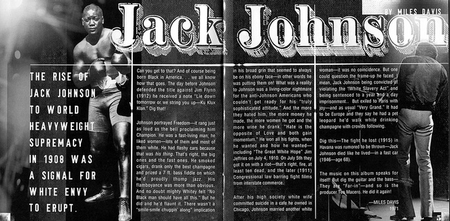 "Davis comenzó a trabajar en el documental de manera entusiasta, leyendo todo lo que podía sobre Johnson y sobre la historia del boxeo, viendo películas sobre encuentros clásicos… e incluso llegó a dormir con una fotografía de Johnson cerca a su cama", explica Szwed sobre el proceso creativo del músico.