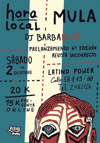 - Hora Loca | Mula: Este parche junta a dos exponentes irreductibles de la escena musical bogotana. HORA LOCAL, la legendaria banda de rock bogotano, estará presentándose junto con MULA, la banda de música instrumental que conjuga el free-jazz, el punk, el hard-core y la champeta. Simplemente imperdible.