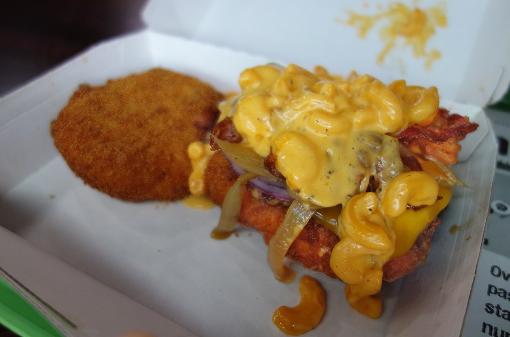 Quizá los extranjeros tienen razón, porque de hecho éste no es el único restaurante súper gringo que ofrece una hamburguesa hecha de macarrones con queso. Pig Pen Delicacy de California se promociona como «el Hogar del Bollo preparado con Macarrones con Queso»; RockIt Burger Bar de Chicago tienen su propio Mac & Cheese Attack; y Datz Restaurant en Tampa vende la Cheesy Todd, la cual tiene un bollo de macarrones con queso, jalapeño y tocino.