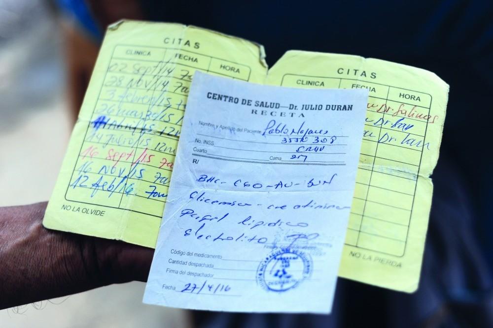 Como es sábado, tiene pensado acudir el lunes al médico para saber cuánto tiene de creatinina. Espera recibir medicamentos con la visita pero su madre le dice que no vaya, que no pierda su dinero, porque ella ya ha se ha encargado de conseguir betabel y naranjas dulces. «Mi yerno dice que el betabel con jugo de naranja es bueno para la sangre y funciona rápido. Lionel se lo toma y de inmediato le cambia el color», explica su madre. La ayuda que recibe por viudez es de 2.500 córdobas (unos 253.000 pesos), pero como Lionel no percibe un céntimo aunque esté enfermo, no le queda más que seguir trabajando para ayudar en la casa.