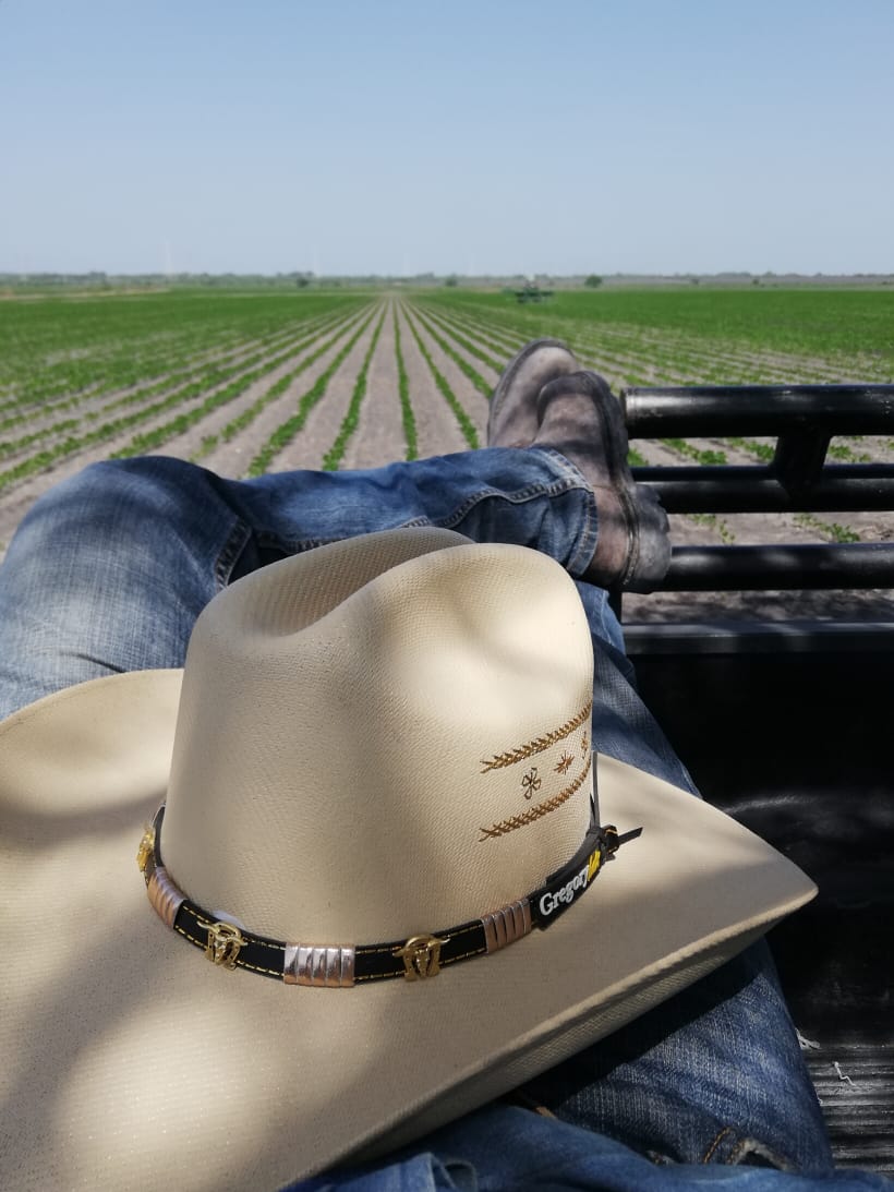 Estudié Ingeniería Agrónoma. Trabajo como supervisor de agricultura en una empresa que se dedica a la producción de grano, particularmente soja y sorgo. Mi especialidad es zootecnia, no la fitotecnia, pero estoy aprendiendo del negocio. A las seis de la mañana ya tengo que estar recogiendo a los trabajadores para llevarlos a sus diferentes áreas, en una camioneta de la empresa. Llevo a los operadores a sus tractores y a los macheteros a los campos. Después, debo repartir diesel a los tractores, empezando por los que gastaron más el día anterior. Una vez que ya hice eso, me encargo de recorrer los 25 ranchos en los que sembramos para asegurarme que todo esté en orden y que se resuelvan todos los imprevistos.