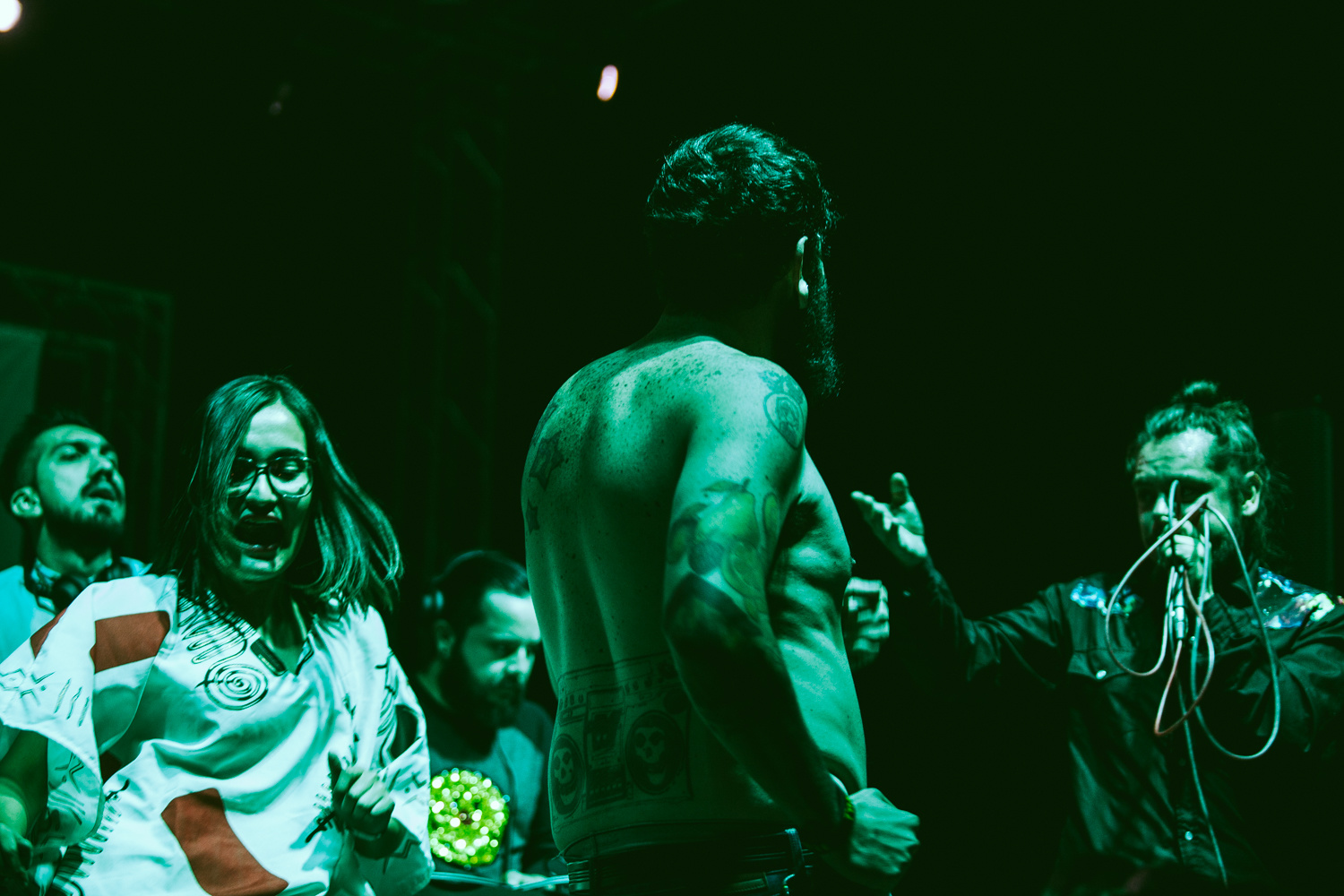 Sonido Satanás tiene un estilo cumbianchero de esos que siempre ponen a bailar hasta al más fresa —»márcala», decimos en Torreón cuando se baila la cumbia, y así andábamos todos: marcándola. Las últimas dos apariciones fueron electrónicas; el festival ya invitaba a los más densos a mostrar sus mejores pasitos ravers y a los más borrachos a tropezarse con sus propios pies. Entre el público estaban Paulina y Raúl —los Sotomayor—, y Diego —el Dromedarios Mágicos—, quienes gozaron de la fiesta de inicio a fin, bailando con el resto de la gente.