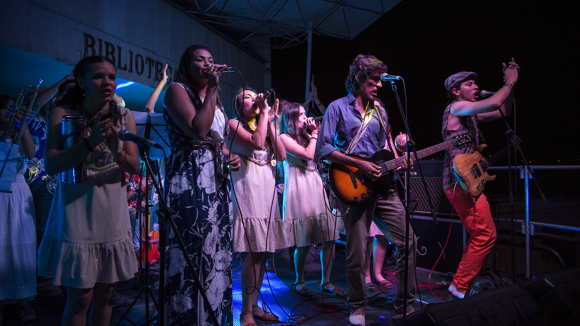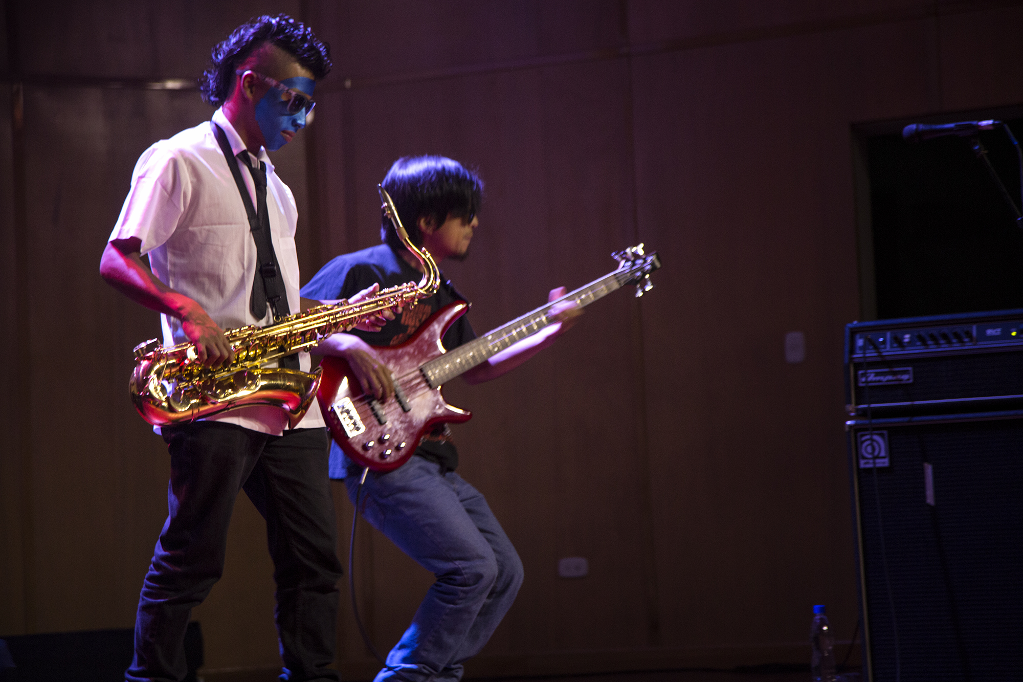 Con los ojos rojos por el efecto del cloro, la cerveza y unas discretas dosis de humos sugestivos, a las cuatro de la tarde nos preparamos para el concierto inaugural con la Banda de Músicos de Piedecuesta y DJ Trucha. La impetuosa interpretación de porros, cumbias, polkas y rumba criolla tuvo efecto en el escaso público que apenas asomaba su cabeza en el auditorio. Tan solo hubo tiempo para un cigarrillo cuando la trompeta de El León Pardo tronó en la tarima dispuesta en la terraza del Mantilla Orbegozo. Lo suyo fue una andanada sicodélica de jazz, champeta y funk que precedió a Garrote, una emblemática agrupación que nos dejó con ganas de conocer a fondo la movida de hard core en la ciudad. Luego de su furibundo concierto –que incluyó una potente versión de «El paracaídas», composición original de Velandia- vino el sosiego con Las Avispas Africanas, proyecto solista de Henry Rincón, el diestro baterista de Velandia y la Tigra. En seguida asistimos a uno de los momentos más vibrantes del festival: junto al coro de la UIS y dos percusionistas sinfónicos, Tres y Yo ofreció un arrollador recital de pop progresivo que nos dejó flotando en un éter de canciones hiladas con filigrana.