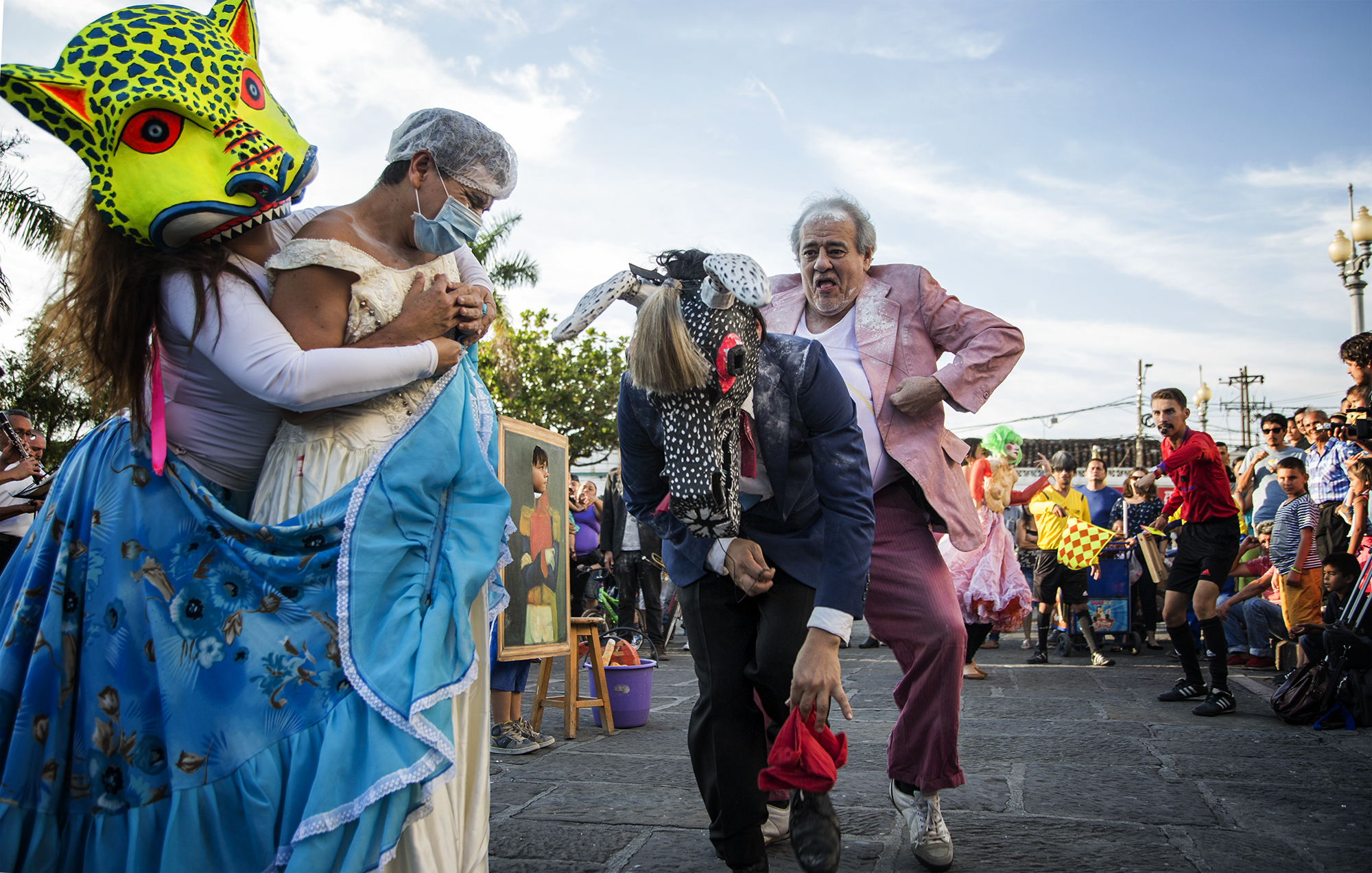 A eso de las nueve, el sol apareció radiante, dispuesto para la primera actividad del festejo. La Fábrica guió un taller de gestión cultural. Entre escépticos y optimistas, cuatro palabras nos quedaron dando vueltas en la cabeza: terquedad, riesgo, complicidad y frustración. A eso del mediodía, después de vehementes alegatos, concluimos algo apenas obvio: en esos enmarañados asuntos de la «gestión» hay que hacerle caso al señor con máscara de burro, que bien dijo alguna vez: «… no le meta mente, López ¡accione!».