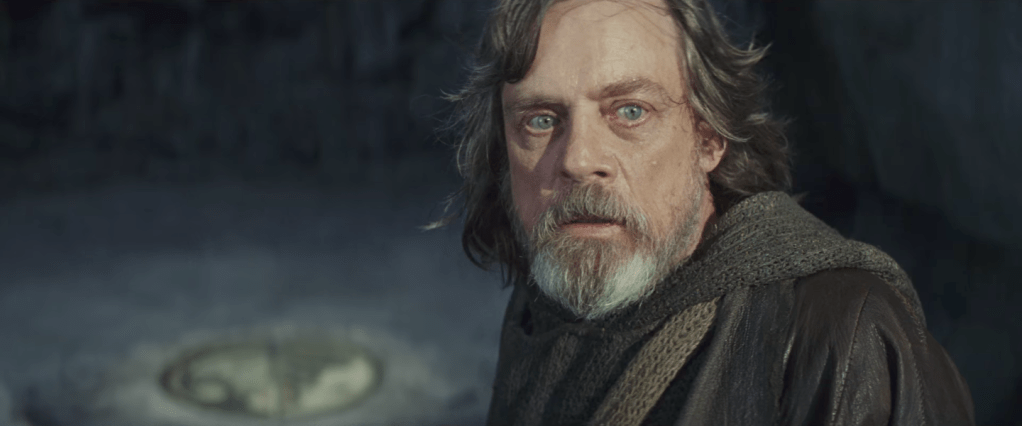 Por la expresión de Luke, deducimos que teme que Rey siga los mismos pasos de Kylo. Luego vemos a Luke alejarse y dejar a Rey atrás, agarrada al borde de un precipicio, mirándolo furibunda.