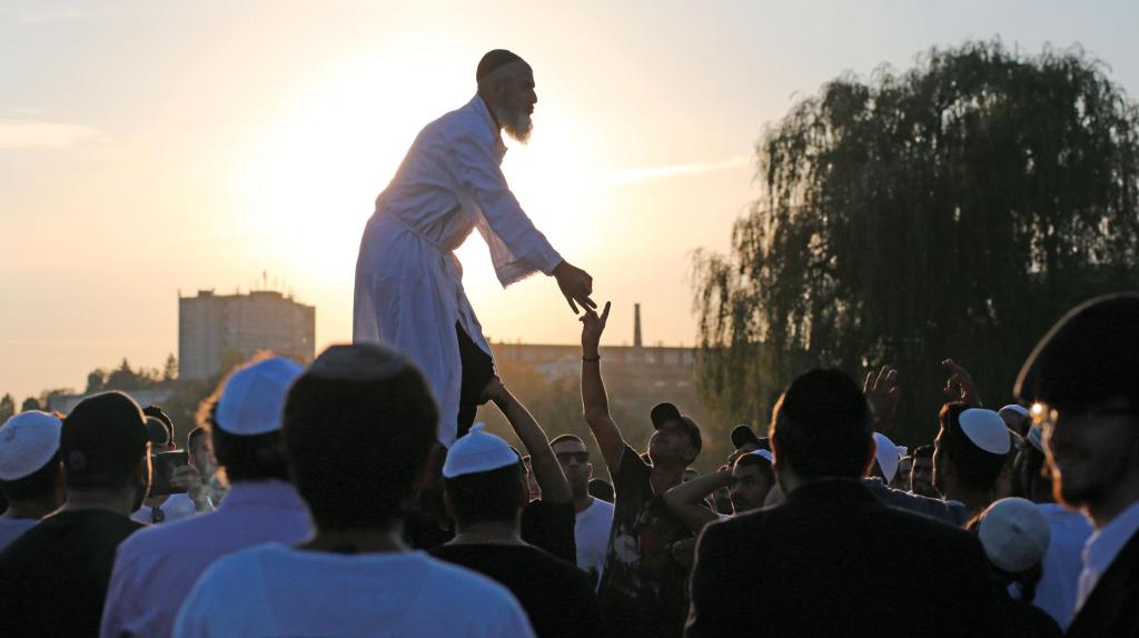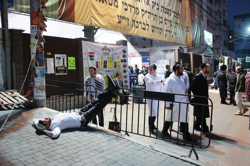 Si vous voulez avoir la moindre chance d’accéder à l’un des stands de falafels ou shawarmas entassés à l’attention des dizaines de milliers de pèlerins qui viennent d’arriver, il vous faudra fendre la masse de personnes brandissant des shekels, des dollars et des hryvnias. C’est une vraie jungle ici, à la veille de Rosh Hashanah, le Nouvel An juif, à Ouman en Ukraine, où repose le mystique hassidique du xix e siècle que l’on connaît sous le nom de Rabbi Nahman de Bratslav (dans le hassidisme, « rabbi » est un terme affectueux pour désigner un rabbin, qui implique aussi une forte influence spirituelle). Nahman a promis la rédemption à quiconque se rendrait sur sa tombe, et depuis plus de 200 ans, elle a fait l’objet d’un pèlerinage effréné chez les juifs du monde entier. Depuis dix ans, l’atmosphère frise parfois le carnavalesque. On y voit des disciples de Nahman, traditionnellement des hassidim élevés dans la religion, frayer avec d’anciens fans du Grateful Dead, d’ex-fanatiques de Phish, des criminels repentis et des alcooliques ou toxicomanes (plus ou moins) en rémission. La langue usuelle est l’hébreu, mais on y entend de l’anglais, du français, du yiddish et du russe. Les seuls à parler ukrainien sont les locaux, qui ne peuvent accéder à la rue Pouchkine qu’en prouvant qu’ils vivent ou travaillent dans le quartier. Une mesure sans doute prise pour limiter l’engorgement, mais aussi pour prévenir les actes de violence entre la population autochtone et les dizaines de milliers de touristes religieux qui viennent une fois l’an. En conséquence, les Ukrainiens sont rares, mais ce ne sont pas les seuls : les pèlerins sont tous des hommes. Çà et là, je remarque des affiches en hébreu placardées sur les pylônes téléphoniques et les murs des synagogues : il est interdit aux femmes de se trouver dans des lieux abritant de grands rassemblements d’hommes !