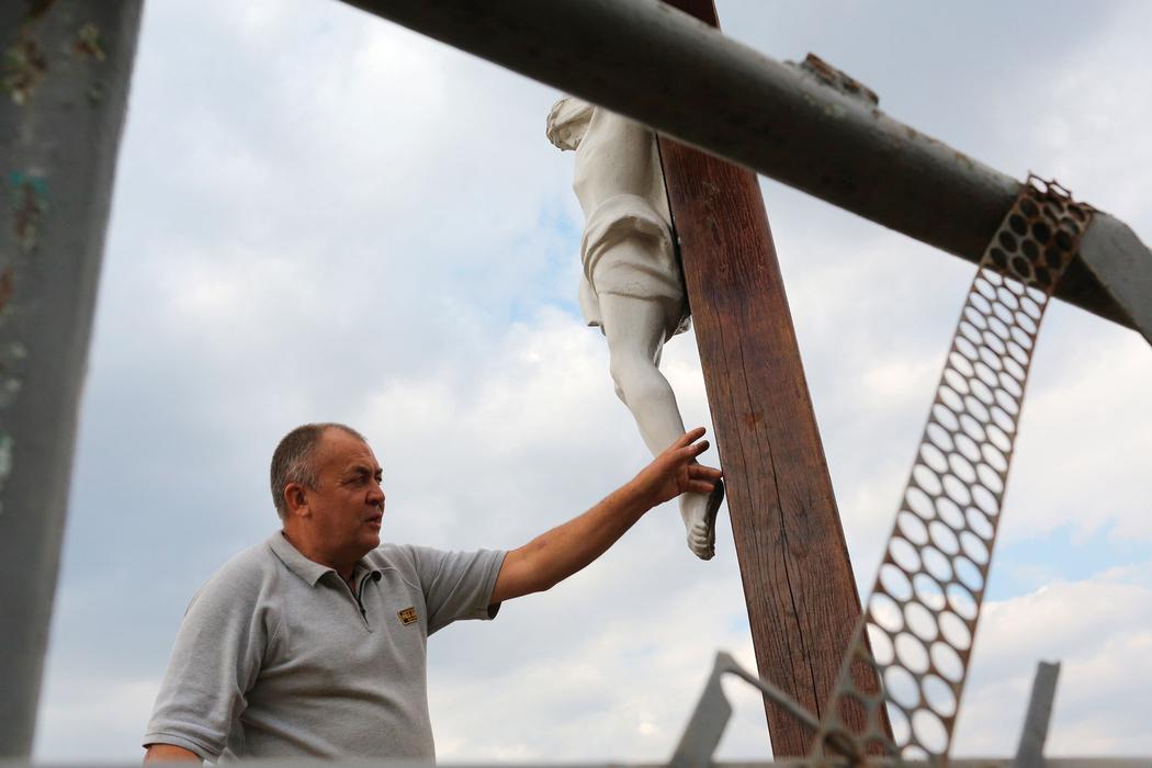 La croix controversée était une idée de Valeriy Kislinski, il y a des années. Kislinski, qu’Alekseev présente comme son assistant, est un type efflanqué avec une casquette de base-ball vissée sur la tête. Kislinski est à l’opposé de son patron – il parle d’une voix mal assurée et si Alekseev sillonne la ville comme un taureau, Kislinski est davantage la mouche qui volette sur ses flancs. La vision religieuse lui est venue en rêve et peu après, il a abordé le sujet face à un conseil d’activistes et d’ONG. L’idée leur a plu, me dit-il, parce qu’ainsi « ces étrangers sauraient où ils sont, sur notre territoire ». Kislinski affirme que ce n’était pas son intention, et l’érection de la croix a été repoussée de plusieurs années à cause de ce désaccord. Pour lui, la notion même d’une croix « contre quelqu’un » est une abomination aux yeux de la chrétienté et ajoute que l’emplacement était simplement le bon, peut-être même la volonté de Dieu. Mais quand Alekseev, lui-même et quelques autres ont érigé la croix en 2013, les dirigeants de la ville comme les leaders juifs ont condamné ce qu’ils jugeaient comme une provocation.