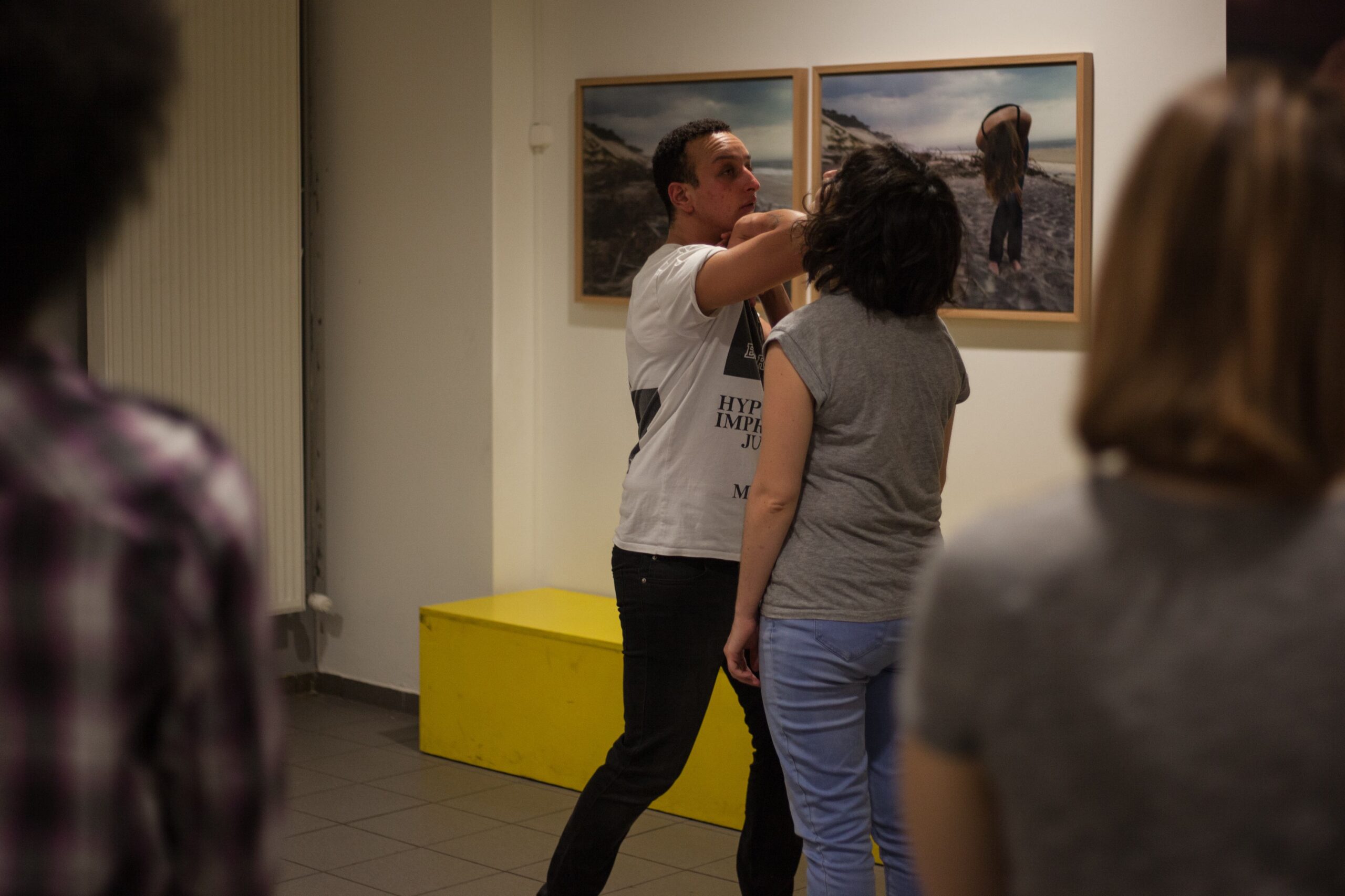 Alors que Dal propose des mises en situation, une participante lui demande : « Qu’est-ce que je fais si un mec me colle aux fesses dans le métro ? » Dal mime la scène et montre différentes manières de s’en sortir. Sifflements, insultes, conversations imposées – « T’es charmante » –, frotteurs ou agressions physiques : toutes les personnes présentes au cours ont déjà vécu l’une de ces situations dans les transports en commun. C’est d’ailleurs suite à une agression dans le métro qu’Annick, 25 ans, s’est inscrite à ce cours d’autodéfense féministe. Récemment, elle a paniqué quand un mec l’a coincée dans une rame du métro : « Il se collait à moi physiquement, je ne savais pas quoi faire, je gueulais, je donnais des coups un peu au hasard, je n’étais pas en contrôle. » Aujourd’hui, elle connaît les bons gestes et sait qu’elle ne réagirait pas de la même façon. Suivent d’autres mises en situation : Qu’est-ce que je fais si on me plaque contre un mur et qu’on essaie de m’étrangler ? Si on m’attrape par-derrière ? Si on me plaque au sol ? Pendant le cours, Dal enseigne des outils simples pour être capable de se défendre en cas d’agression, afin de se sentir plus en confiance dans l’espace public.