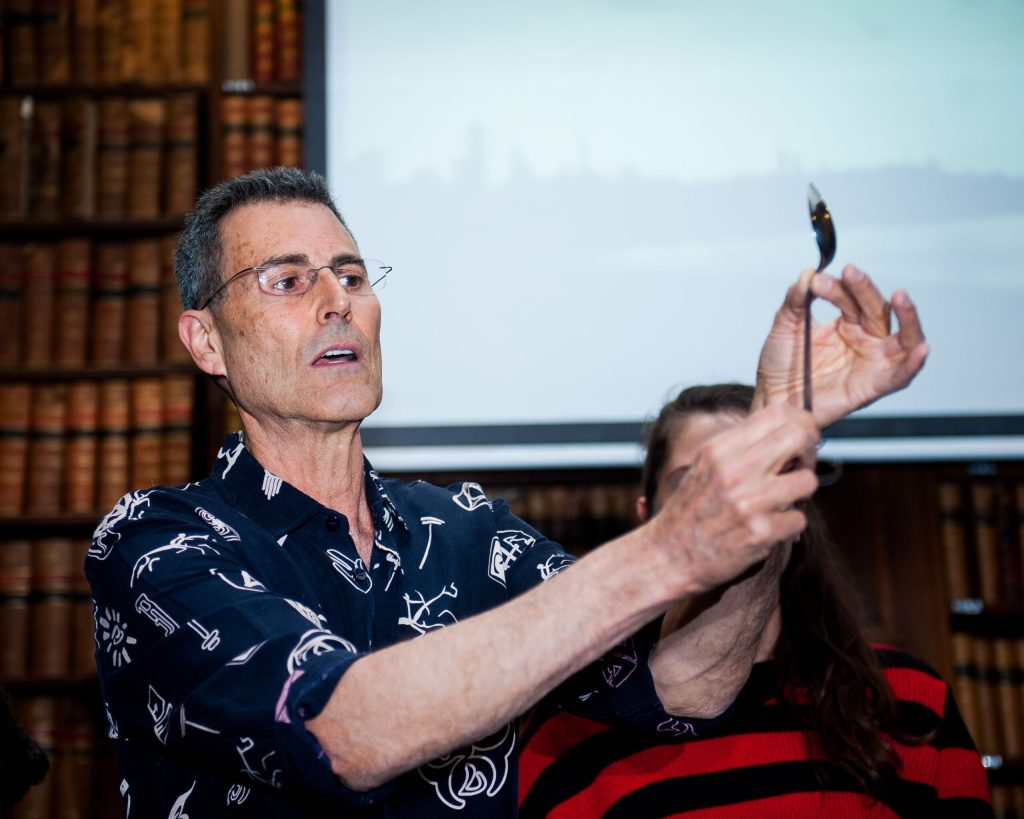 On retrouve la même accusation au sujet de la soi-disant capacité de Geller à tordre des cuillers et d’autres objets en métal par la pensée ; l’auteur souligne que Geller s’est montré incapable de reproduire de tels exploits en laboratoire. Le film montre Geller en train de tordre des cuillers, mais on voit qu’il n’en est pas capable sans les toucher. On voit par ailleurs clairement que non seulement Geller touche les cuillers, mais qu’il les frotte rapidement entre ses doigts. Il s’agit d’une technique fréquemment utilisée par les magiciens, étant donné que leur chaleur corporelle et la chaleur générée par la friction chauffent et ramollissent le métal, ce qui le rend plus facile à tordre. Sans compter qu’en frottant le métal, le magicien peut également le manipuler en exerçant une pression dessus et en le tordant de quelques degrés.