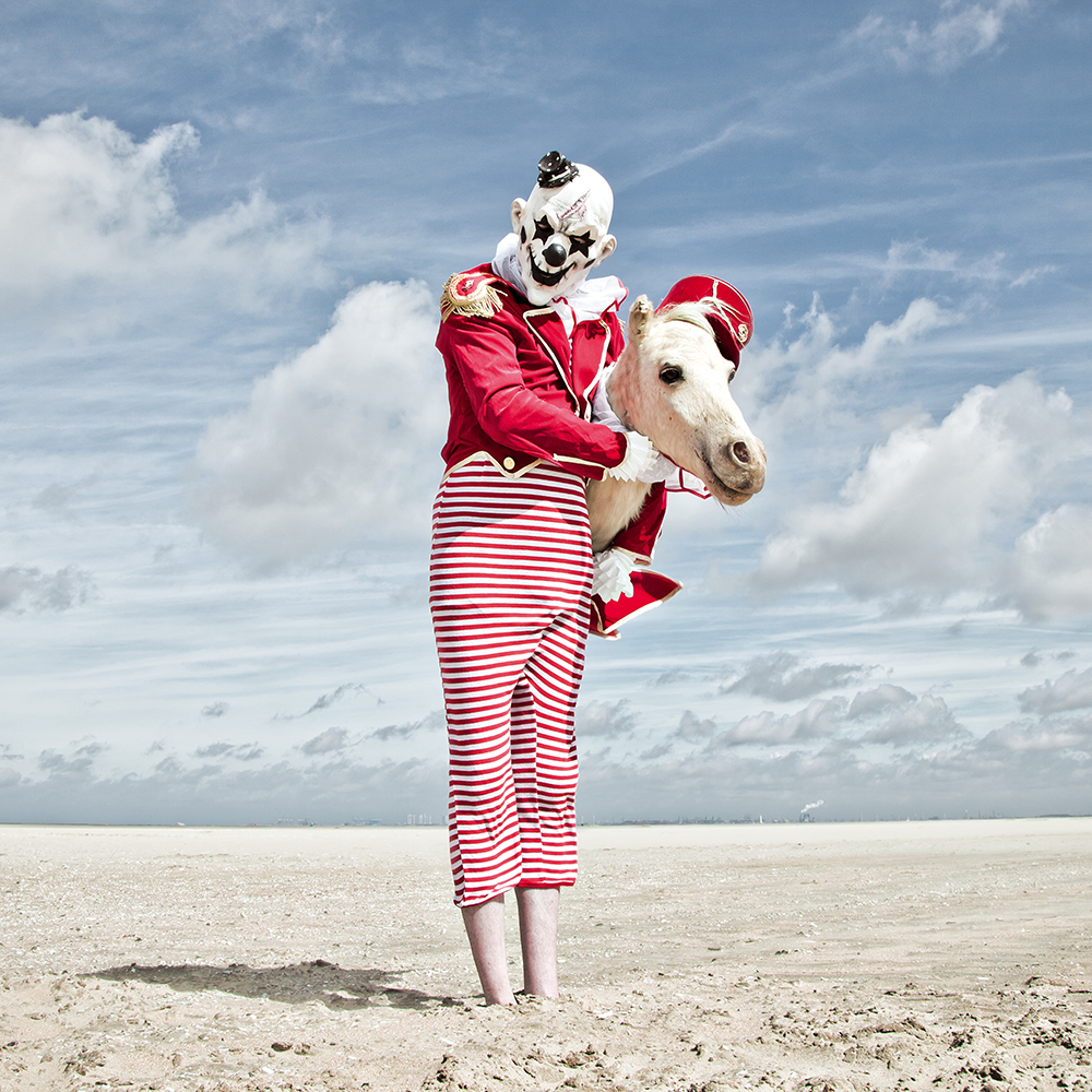 Le couple d’artistes belges est suivi par plus de 100 000 abonnés sur Instagram. Dans le sillage d’un Joel-Peter Witkin et fortement inspiré par la photographie mortuaire de l’ère victorienne, ils font partie des rares artistes à passer devant et derrière l’objectif pour incarner leur univers « morbide et fantaisiste. » Leur « Wounderland » est une contrée imaginaire peuplée de clowns cauchemardesques et de freaks en guenilles qui posent avec leurs animaux de compagnie — zèbre momifié, chimpanzé rafistolé et perdrix flamboyante.