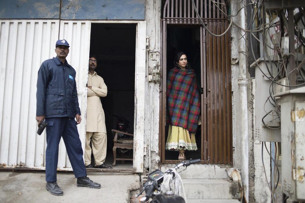 Jannat Ali, 27 ans, est l’une des membres les plus actives de « Khwaja Sira », une importante organisation située dans la ville de Lahore, qui se bat pour les droits des personnes transgenres. Sur cette photo, deux gardes de sécurité protègent Jannat qui se rend à un concert. Les Pakistanais transgenres étant quotidiennement confrontés au harcèlement, Khwaja Sira a dû embaucher des gardes dans le but d’assurer la sécurité de ses membres.