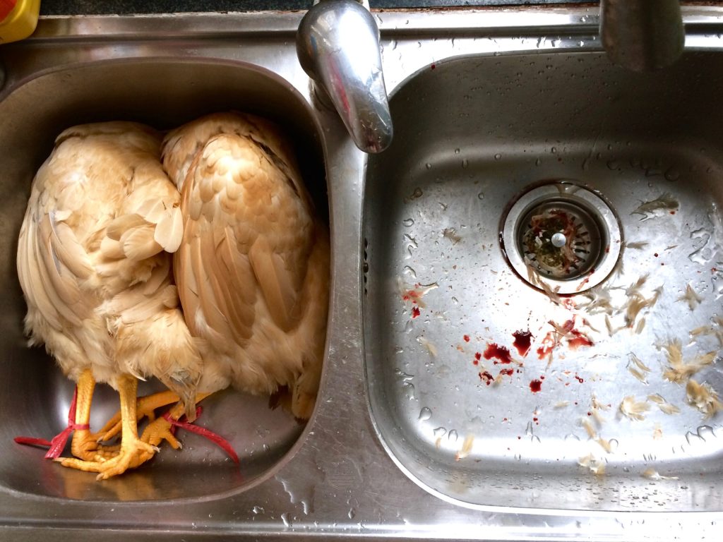 Mais revenons à nos moutons, ou plutôt, au poulet que je m’apprête à tuer.