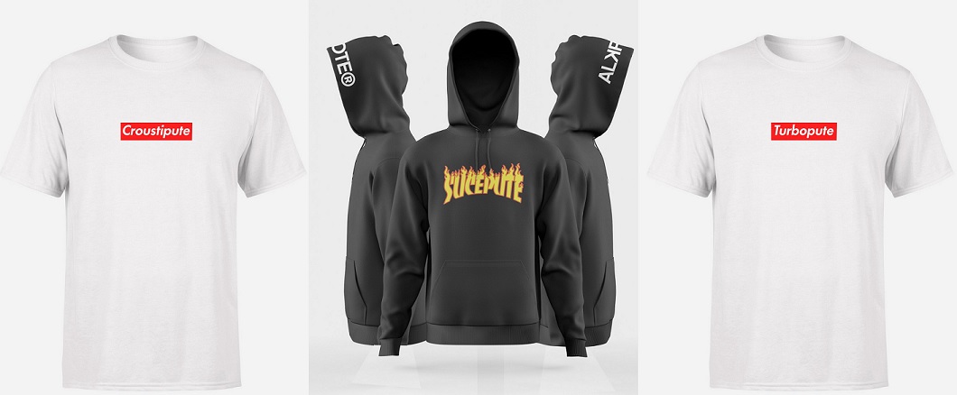C’est vrai que leurs T-shirt sont à 55€, et hormis celui où on voit la silhouette de Macron quand il célébrait la Coupe du monde, c’est très pauvre : on a juste marqué « président », « première dame », « croquignolesque». Qui peut acheter ce genre de merdes ?