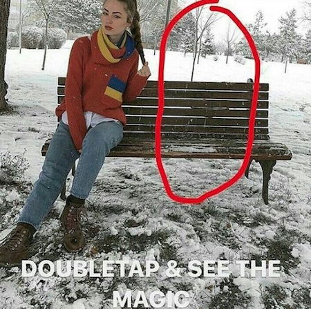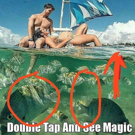 Les images dites “double tap” peuvent prendre plusieurs formes. Certaines photos sont floues, d’autres sont tellement basiques qu’on dirait des stock photos. Parfois, elles sont vaguement pornographiques – des cartoons un peu scabreux, ou des célébrités affligées d’un camel toe assez voyant. Certaines n’ont tout simplement aucun sens. Et puis il y a les mèmes un peu poussifs et sentimentaux, comme cette photo d’une femme et d’un homme au genou saillant (esthétiquement, ça fait penser au clickbait “One Weird Trick“.)