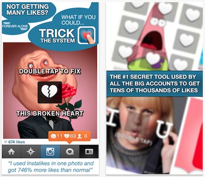 On tombe rapidement sur de nombreux comptes intégralement dédiés à propager ce genre de spams. L’un en fait même son titre : le feed du compte @doubletap.me est privé, mais on peut voir les images qui y sont postées ici. On trouve très facilement des applications de type “double tap sticker” sur Internet (et même sur l’App Store), qui vous permettent d’ajouter automatiquement des instructions sur vos images (“double tap to high five“, “double tap to rock on“, etc.)