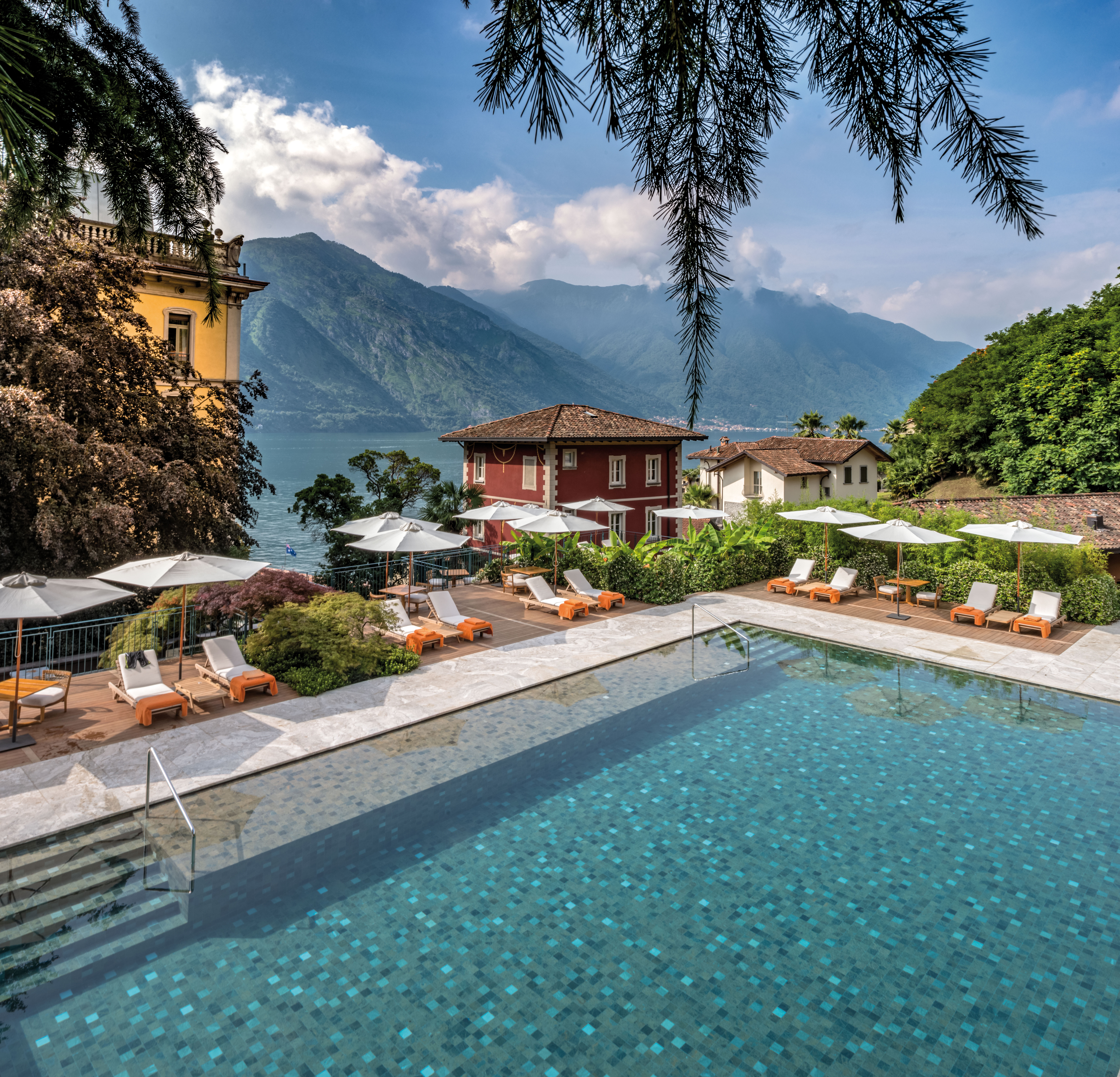 Salah satu hotel tertua di kawasan ini Grand Hotel Tremezzo—dibangun pada awal abad 20—terletak di sebalah kebun botani Villa Carlotta, sebuah desa ikonik yang menjelma pada abad 18. Ditinjau dari danau, posisi hotel legendaris ini tepat di tengah, simetris seperti bangunan di film-film Wes Anderson.