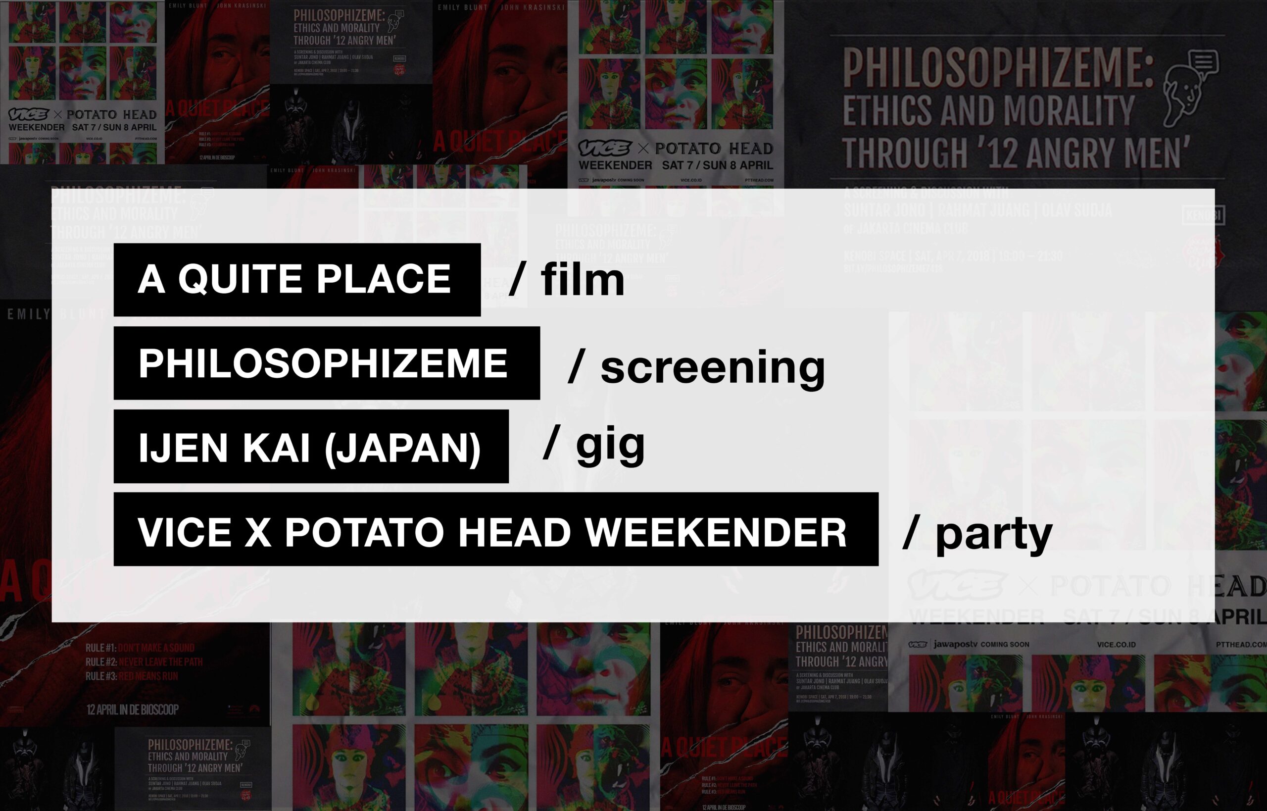 Kadang kalian pasti bingung menghabiskan libur akhir pekan. Kalian kadang pengin tahu, sebaiknya nonton film atau serial TV atau mendengar musik apa ya? Atau kalian butuh info tambahan jalan-jalan atau referensi tempat nongkrong pas malam mingguan? Tenang, VICE siap membantu. Berikut rekomendasi dari awak redaksi kami untuk mengisi Sabtu-Minggu agar kalian terus berbahagia.