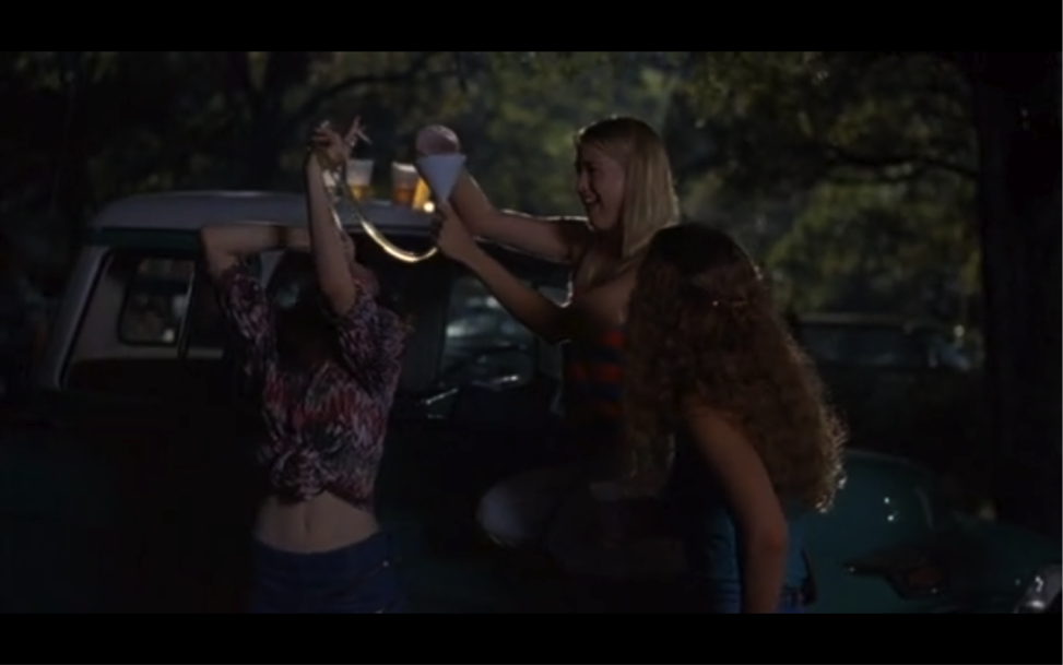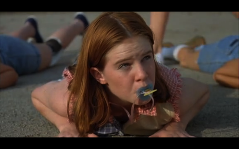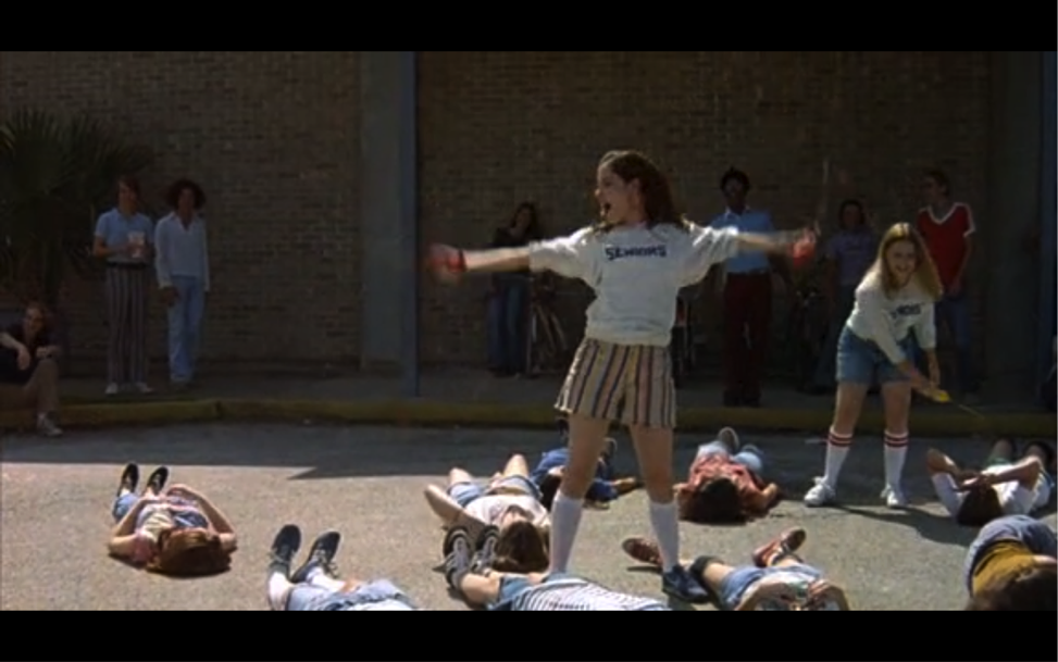 Tutte le altre ragazze indossano jeans tagliati a mano, ma quelli di Darla sono colorati, a righe e più corti degli altri, a simboleggiare il suo ruolo di troietta egemone numero uno. Durante questa scena c’è “Why Can’t We Be Friends”, che evidenzia l’idiozia dell’iniziazione, ma anche il bisogno che hanno le ragazze di portare avanti questo rito.
