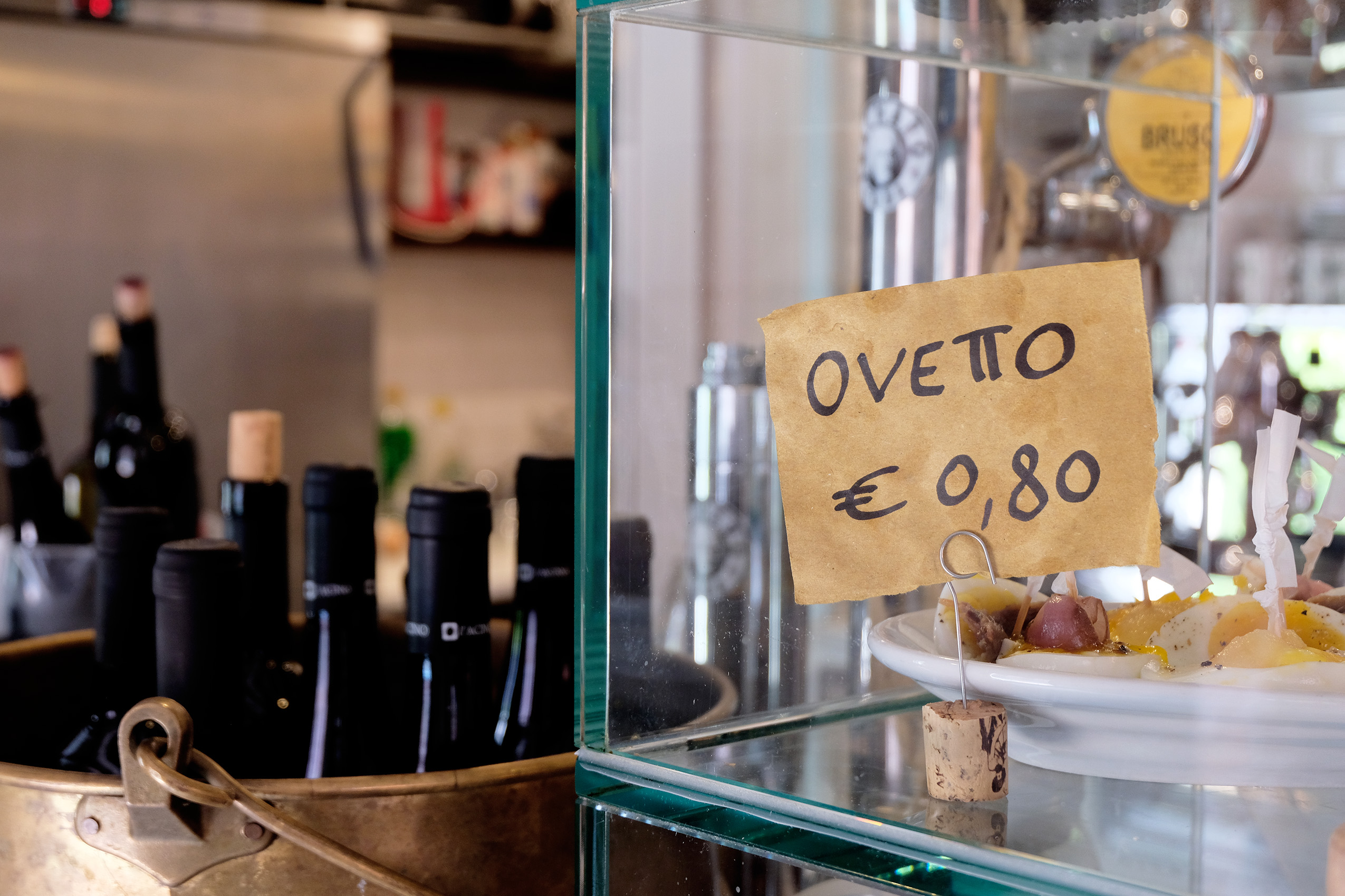 A Venezia le serate sono quasi sempre itineranti. Si va da un’osteria all’altra: bevi un’ ombra (un bicchiere di vino), mangi un cicheto (crostino, polpetta, tramezzino o simile) e poi passi alla prossima osteria. Di solito non ci si siede, si sta al bancone o in calle. E via così, tutta la sera. Si chiama “giro di ombre”.